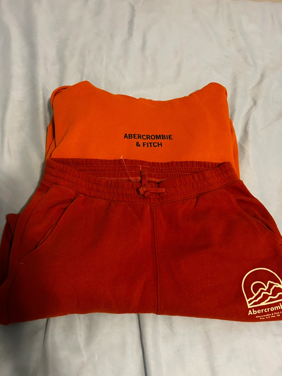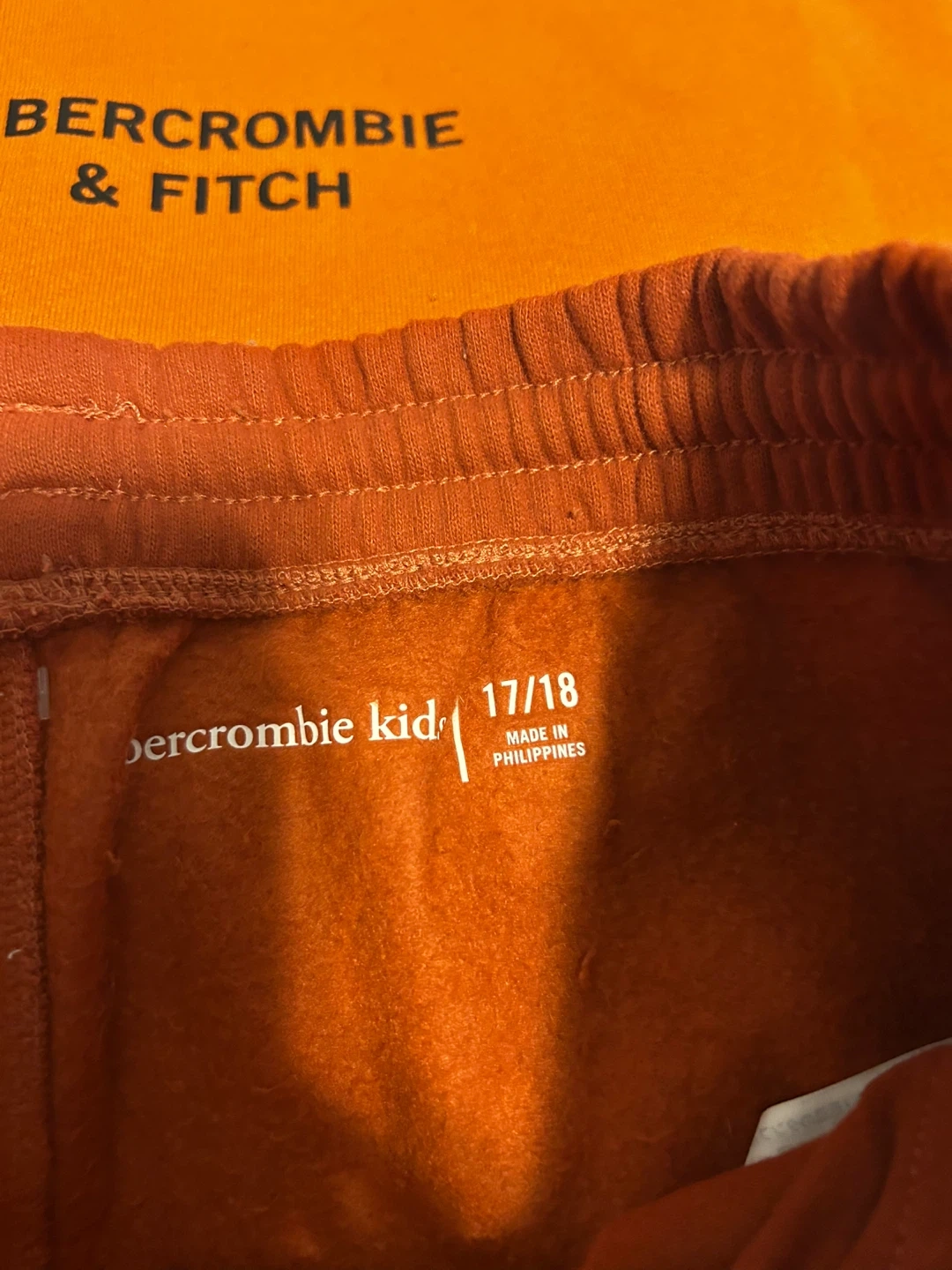 This Abercrombie Kids set includes an orange hoodie and brick colour sweatpants. They're a relaxed fit and size 17/18.
