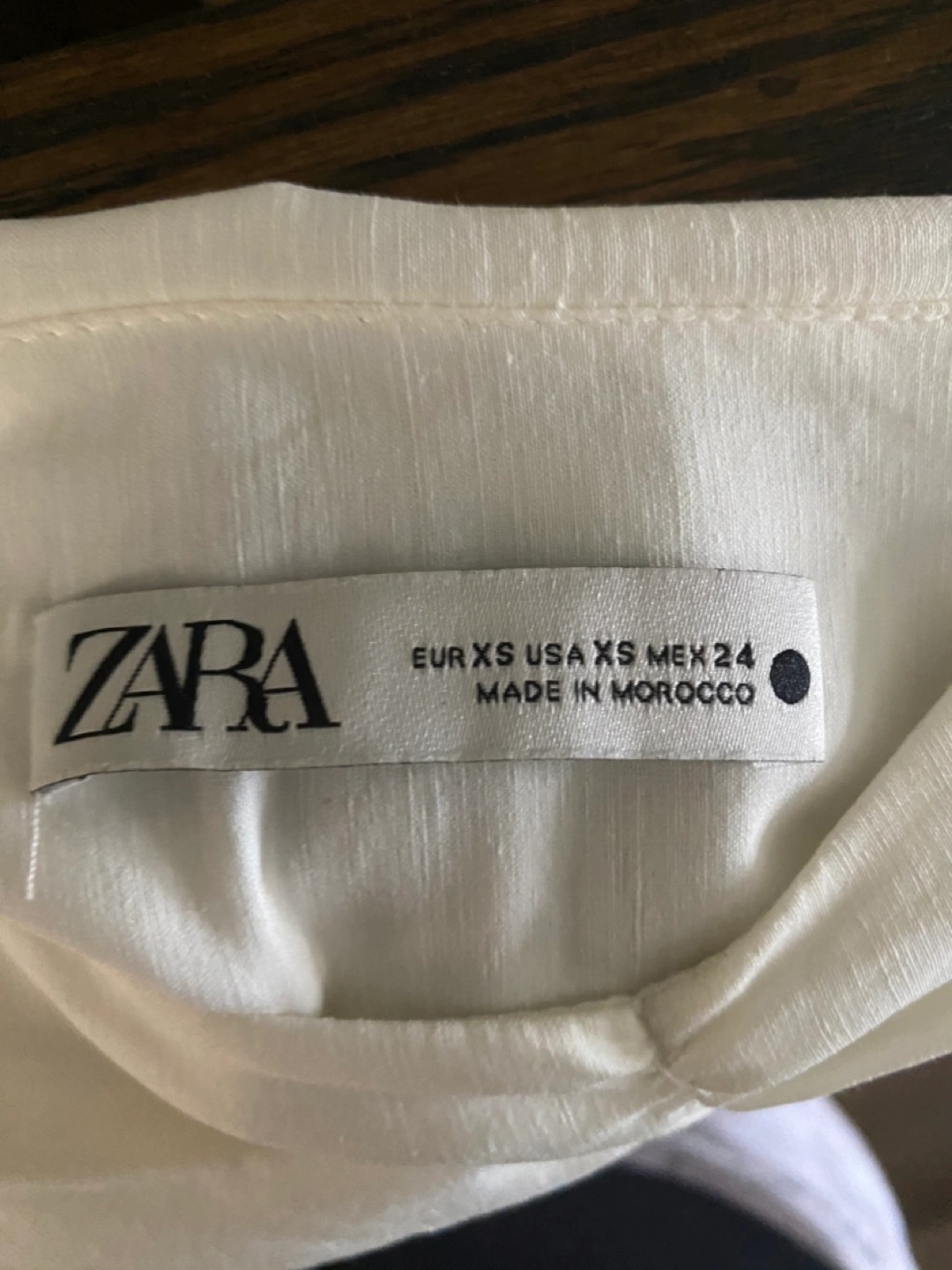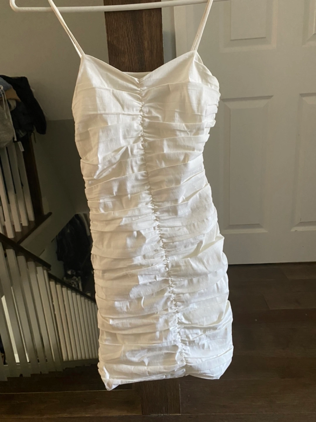 Selling a cute white ruched dress from Zara! It's a size XS and made in Morocco. Perfect for a night out or a summer day. The dress is in great condition!