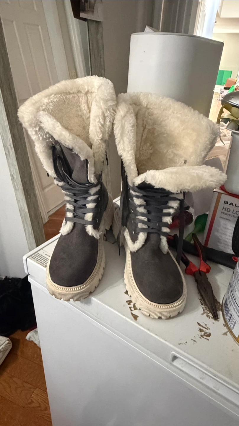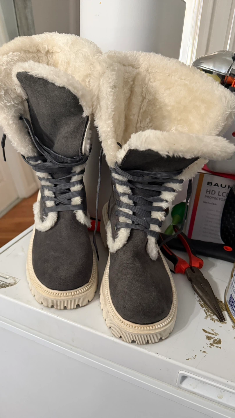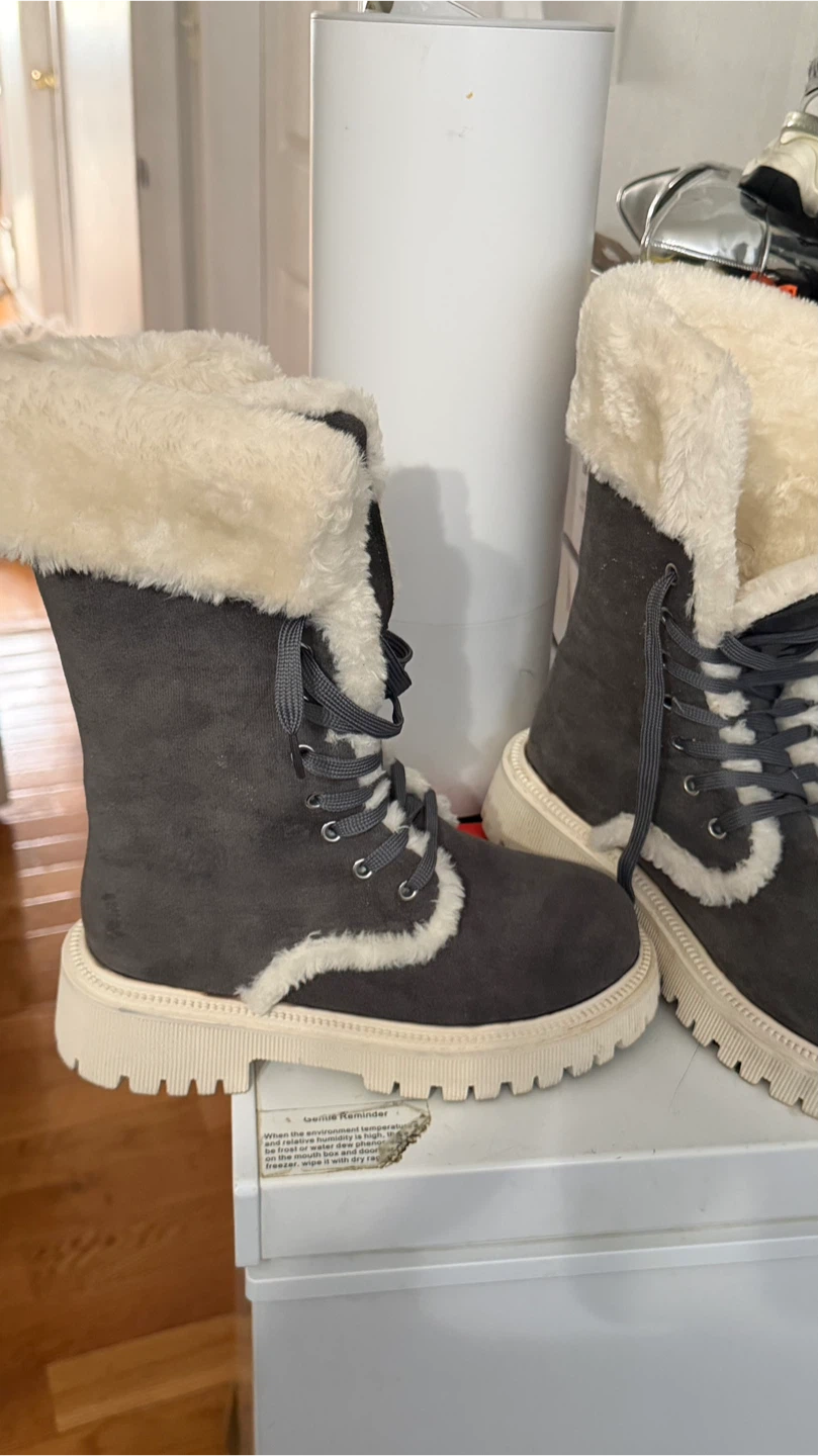 Gray Faux Suede Winter Boots with Sherpa Lining