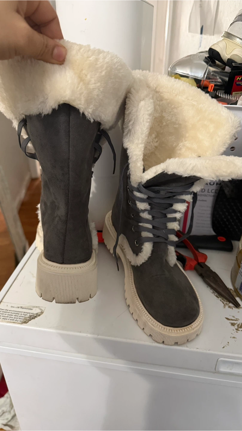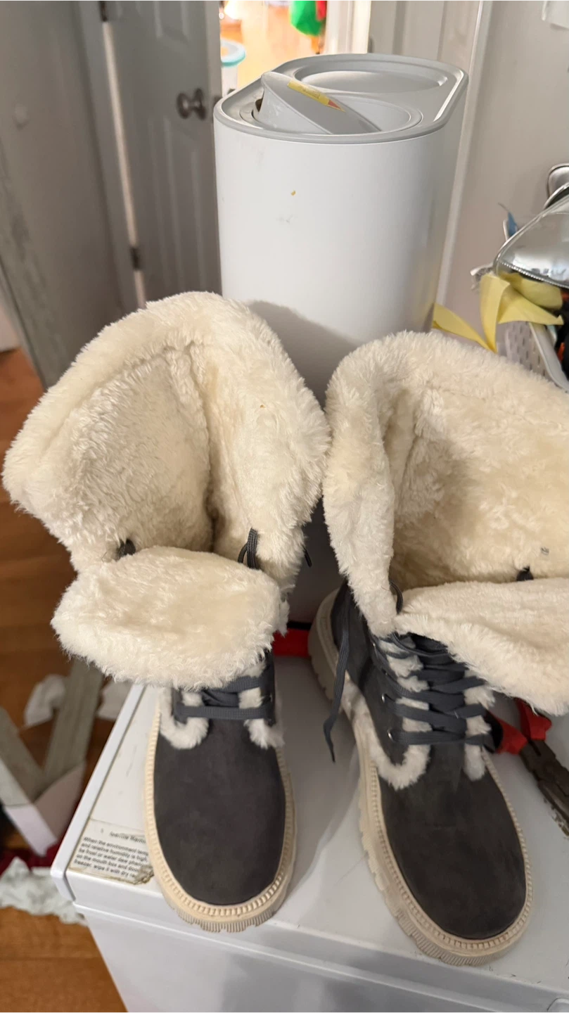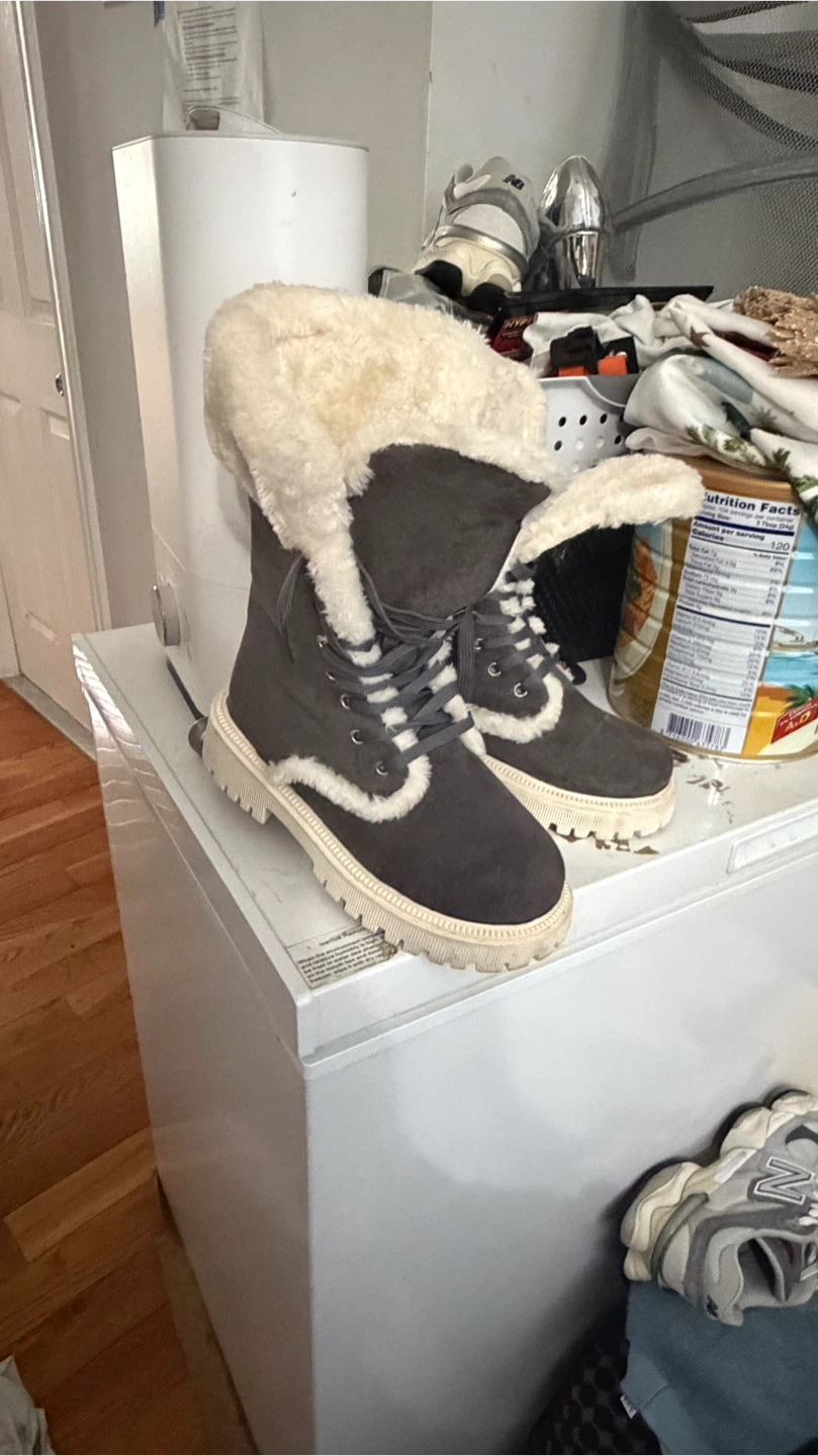 Gray Faux Suede Winter Boots with Sherpa Lining