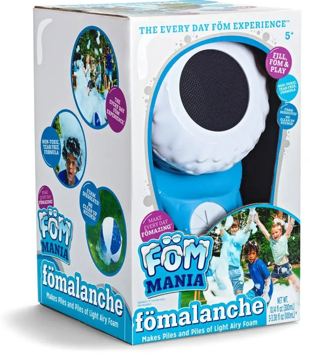 Get ready for some foamazing fun with the Fom Mania Fömalanche! This foam maker is perfect for kids aged 5 and up. It makes piles and piles of light, airy foam for hours of play. The box includes the Fömalanche foam maker. Fill, Fom, and Play!