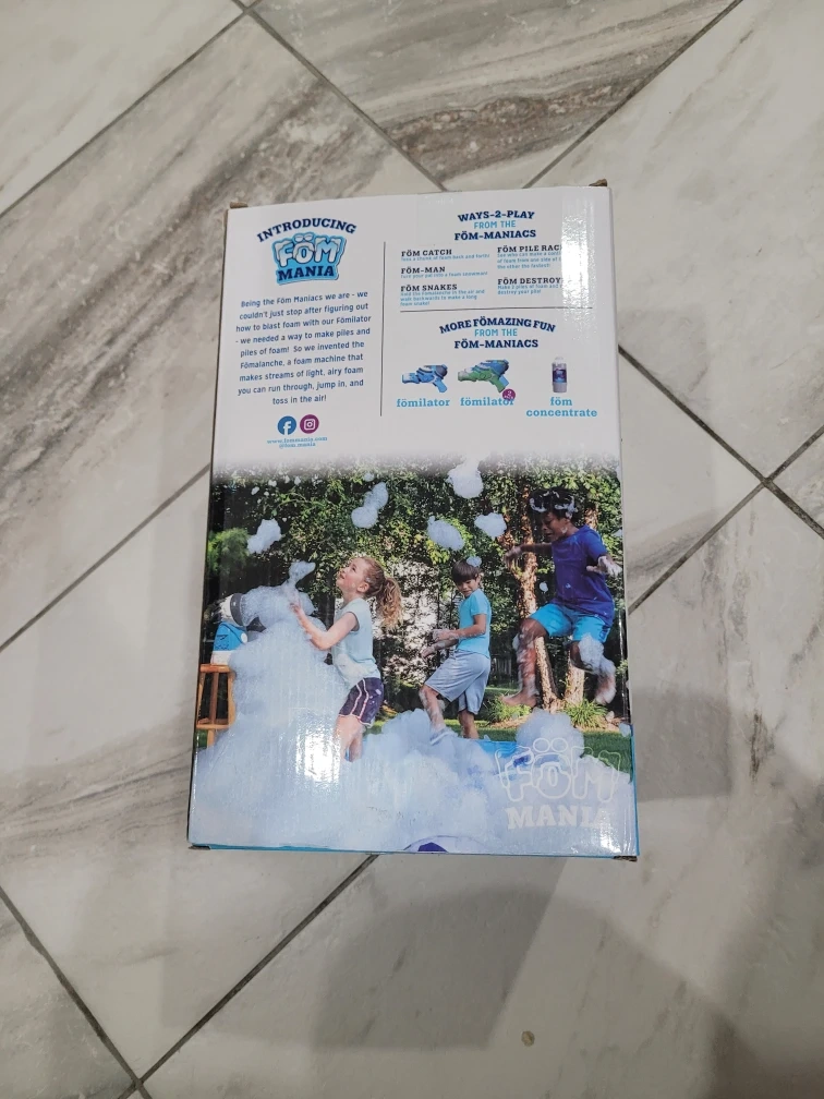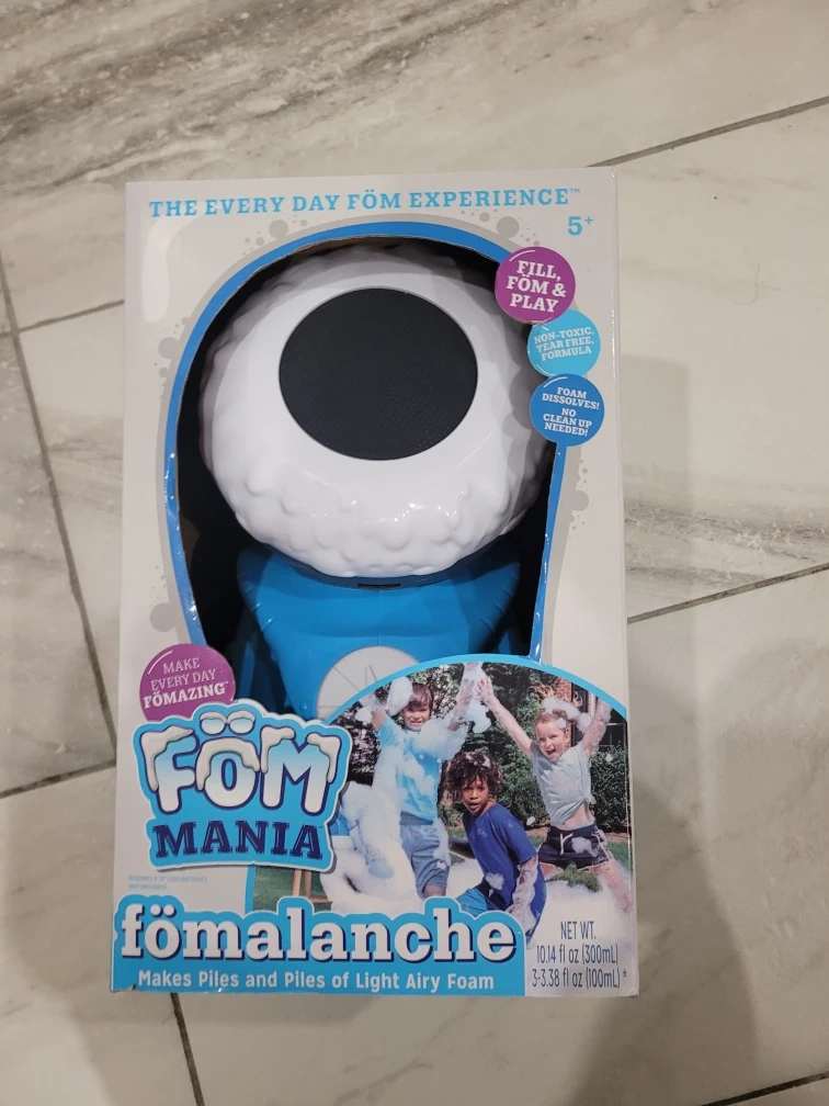 Get ready for some foamazing fun with the Fom Mania Fömalanche! This foam maker is perfect for kids aged 5 and up. It makes piles and piles of light, airy foam for hours of play. The box includes the Fömalanche foam maker. Fill, Fom, and Play!