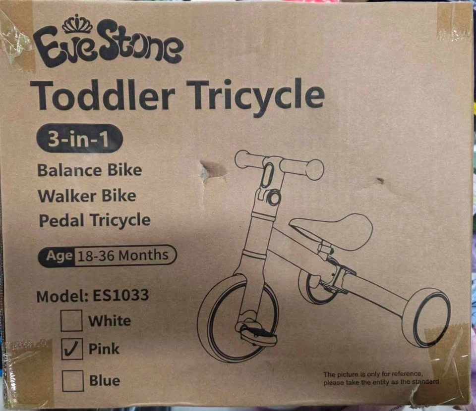 This EveStone toddler tricycle grows with your child, transforming across 3 forms and 5 riding modes. It's perfect for ages 18 months to 4 years, helping build balance and confidence. The sturdy carbon steel frame with an anti-tip design and wide triangular structure offers enhanced safety. Assembly is quick and easy with the included tools. The ergonomic PU saddle and non-slip grips ensure a comfortable and controlled ride. Suitable for both indoor and outdoor use, the silent, non-marking tires protect floors. Let me know if you're interested!