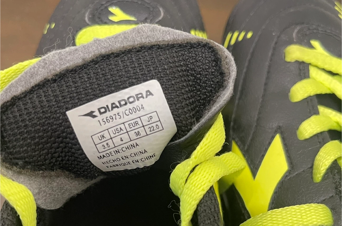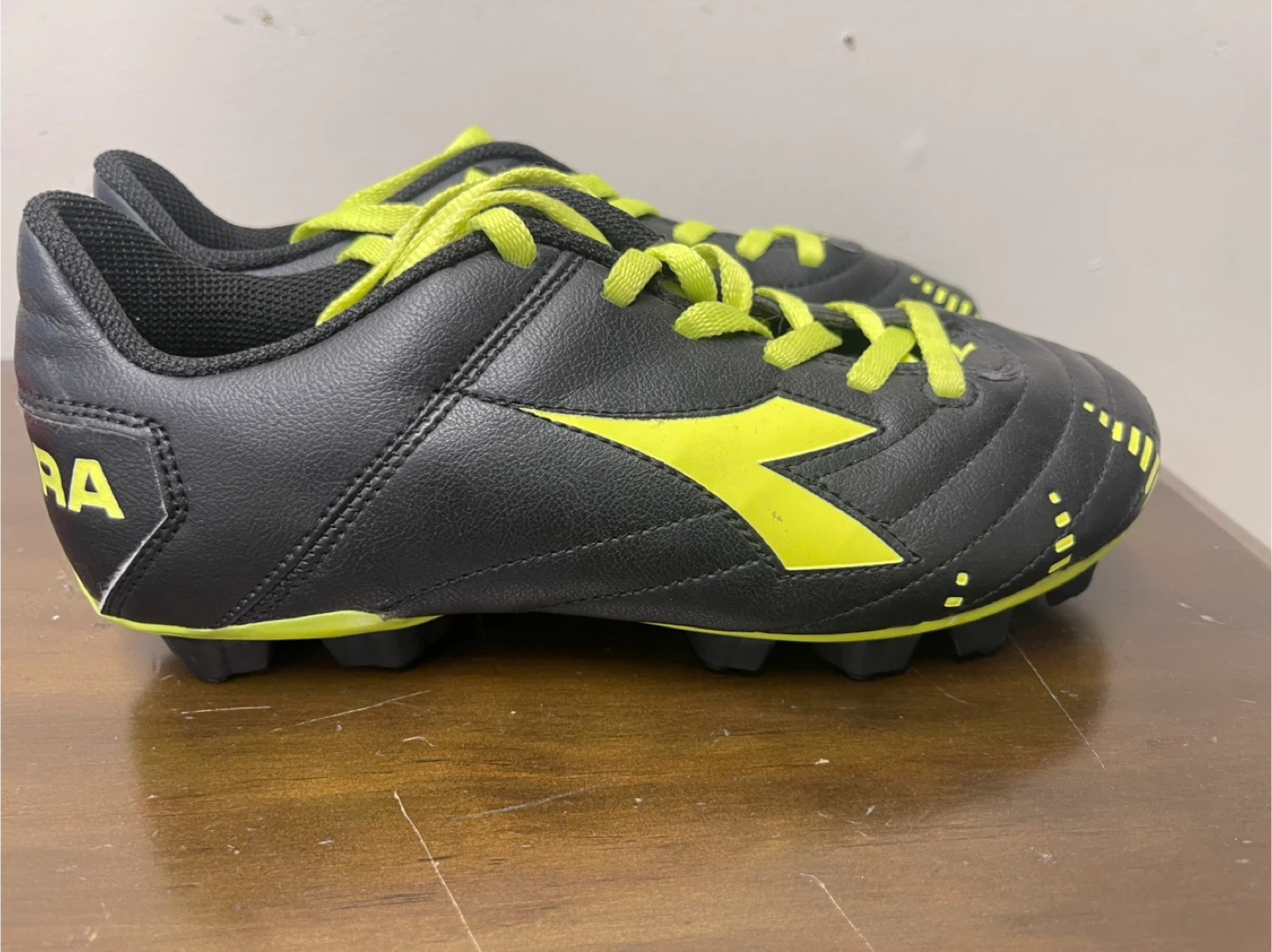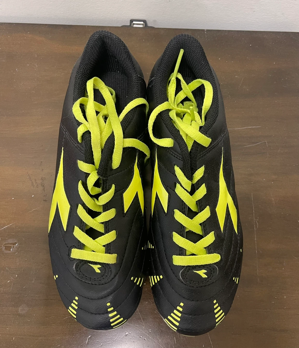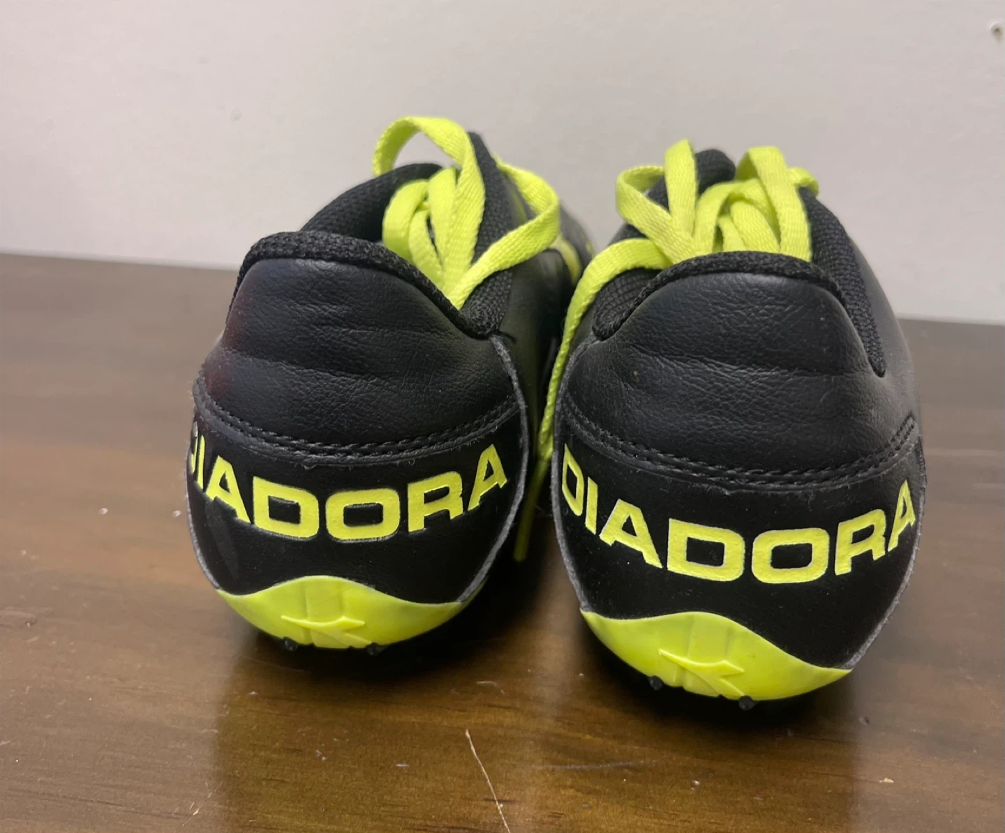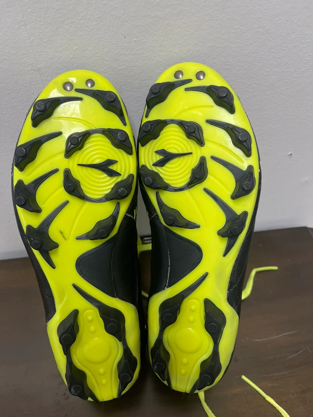 Selling a pair of Diadora soccer cleats in great condition! They are black with neon yellow accents and laces. The size is US 4, UK 3.5, EUR 36, JP 22.0. Perfect for your young soccer star!