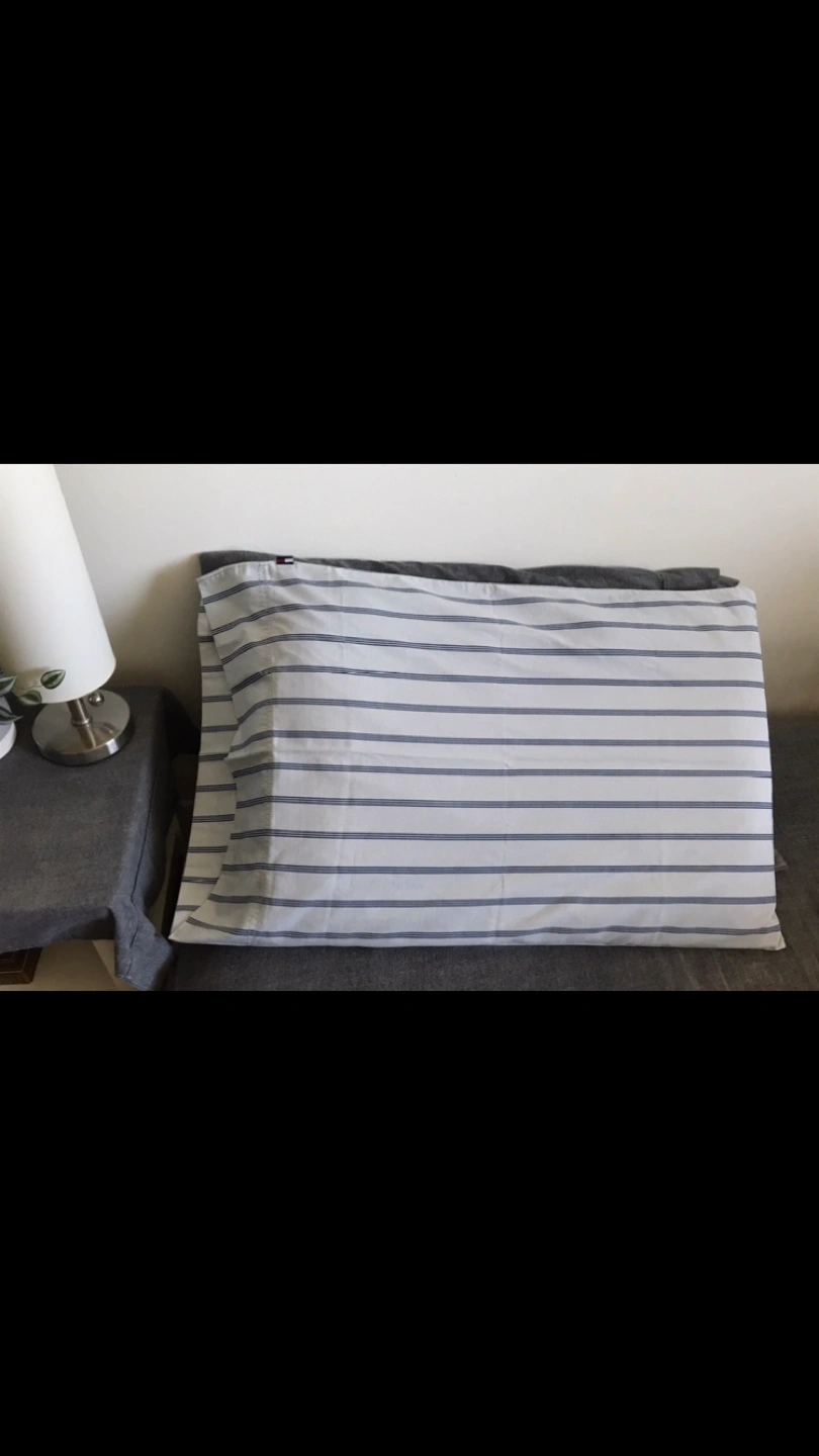 A classic pair of Tommy Hilfiger Pillowcases (they seem larger than standard). In the signature blue naval stripes design & colors that Nautica is famous for.