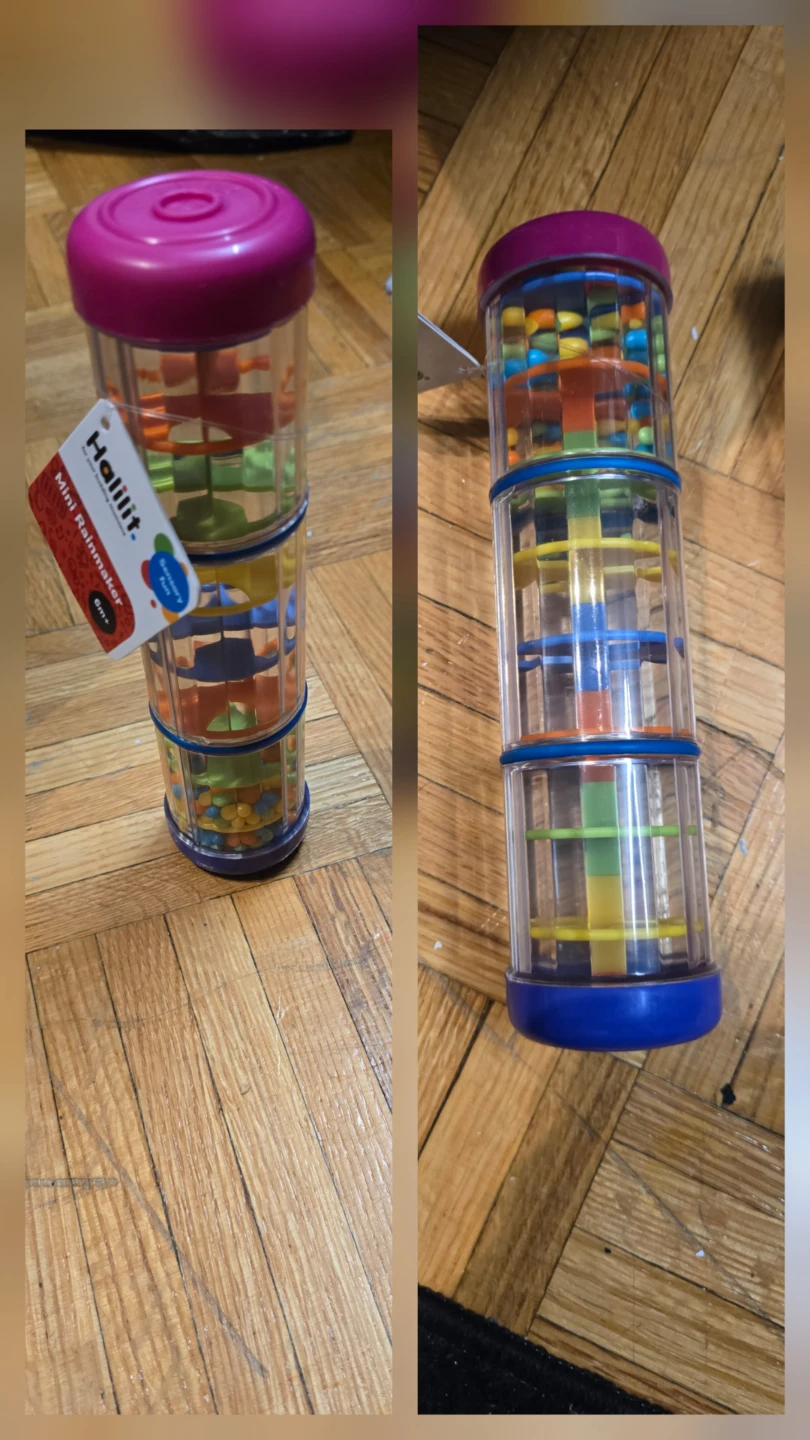 This Halilit Mini Rainmaker is perfect for little ones aged 6 months and up! It's a fun sensory toy that makes a soothing rain sound when turned over. Great for developing auditory and visual skills.NEVER USED