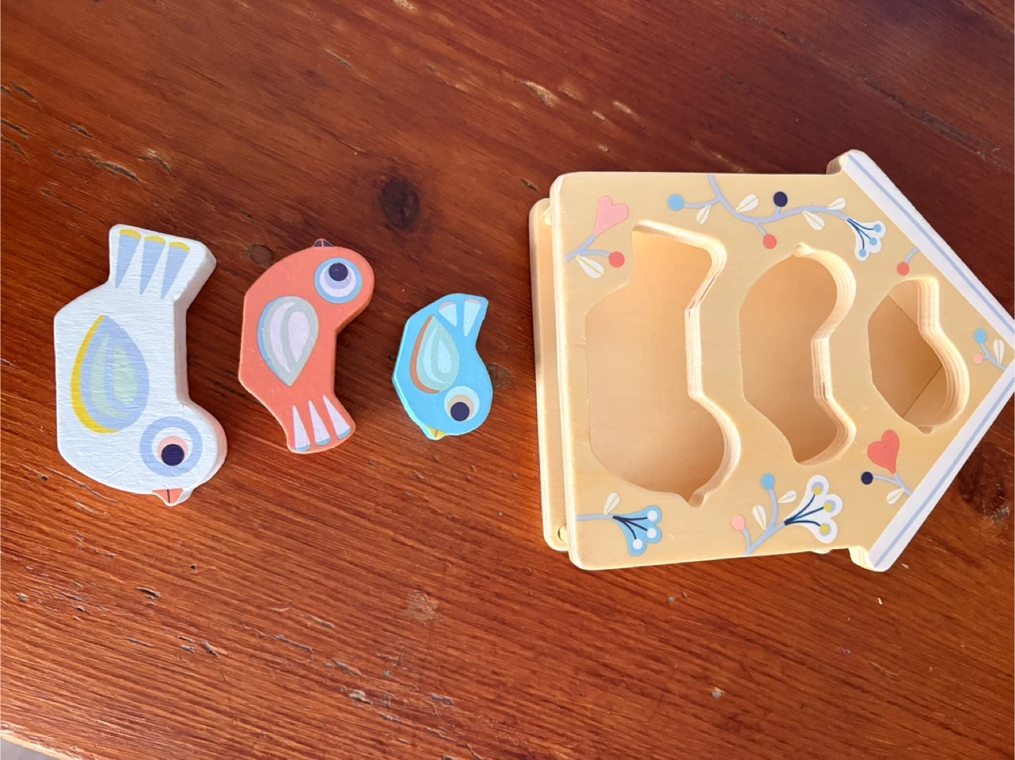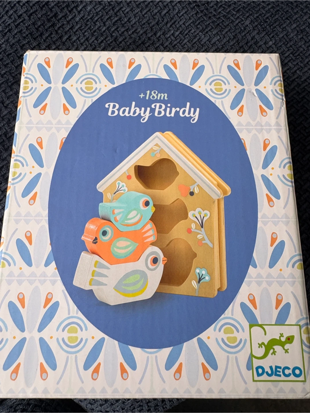 This Djeco Baby Birdi is a wooden sorting and stacking toy. It's a bird house with three colourful wooden birds. Recommended for ages 18 months and up. My daughter never used it. It’s in excellent condition