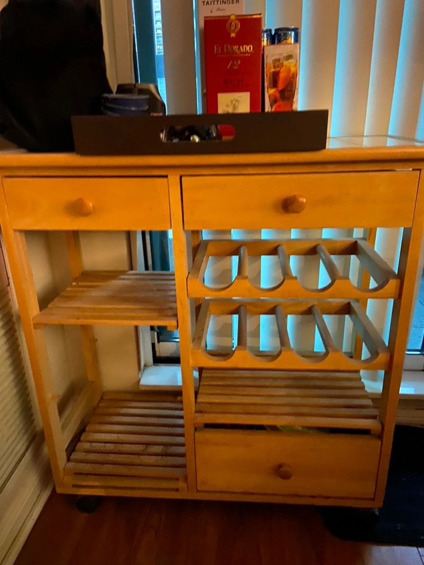 Wooden Wine/Beer cabinet with wheels- great for small space!