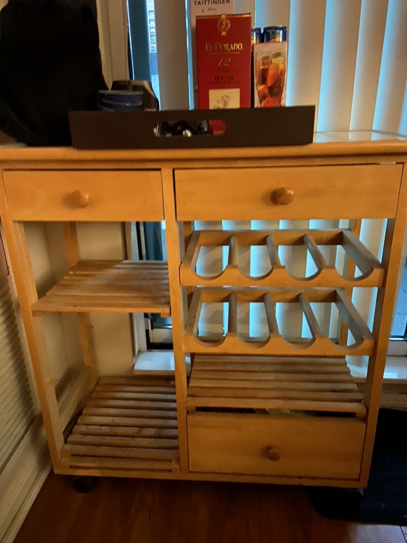 Wooden Wine/Beer cabinet with wheels- great for small space!