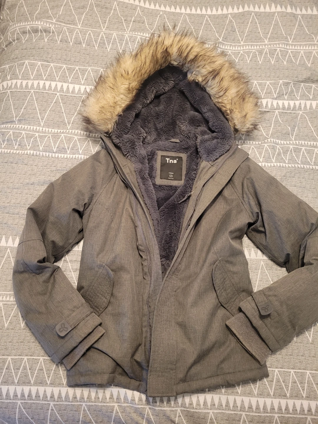 TNA Grey Summit Parka Jacket with Fur Hood Medium
