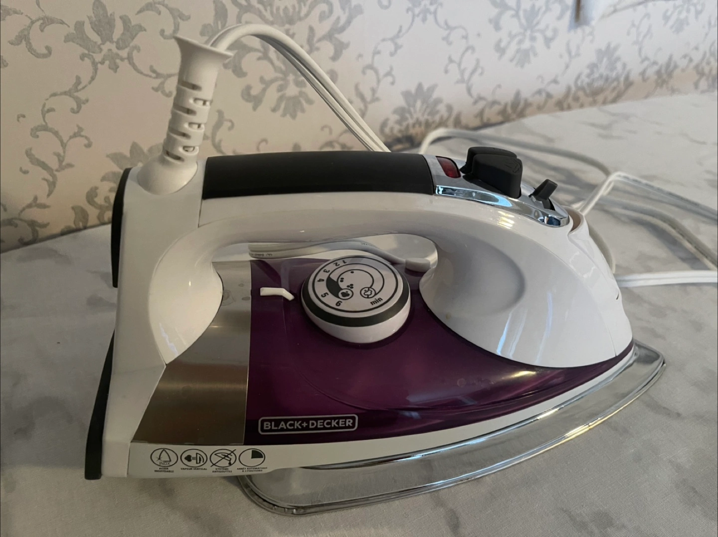 I'm selling a Black+Decker iron with an iron board. It's in great shape, only used once, and ready to help you tackle your ironing pile. It has an auto-clean function and multiple settings to care for your fabrics