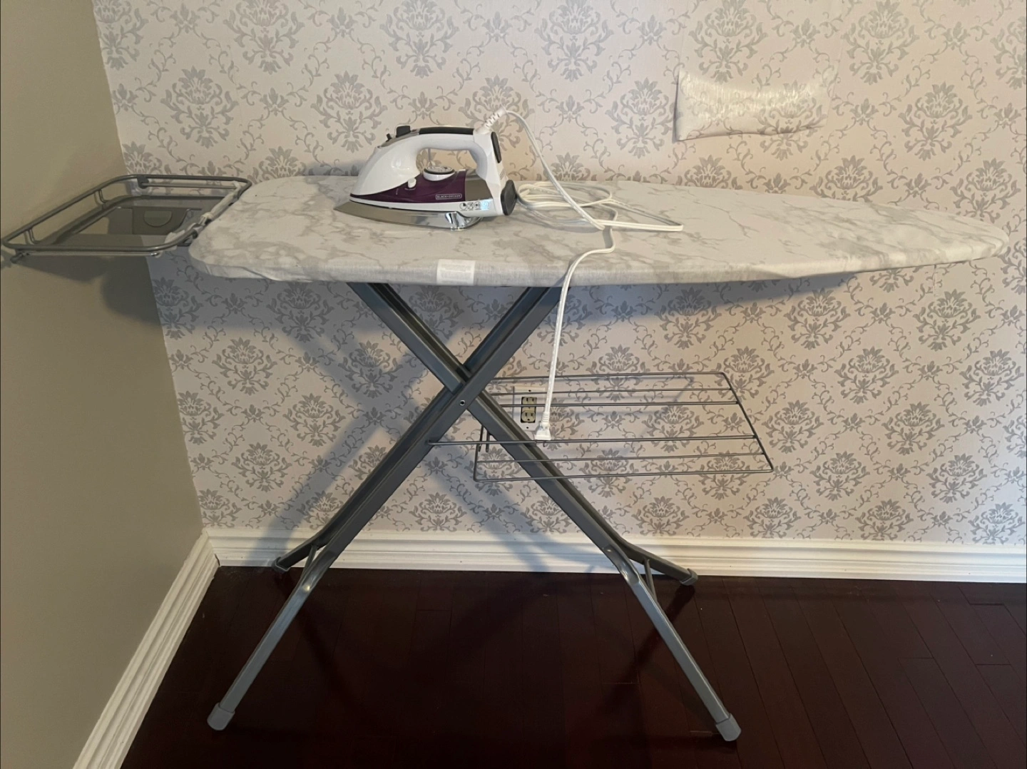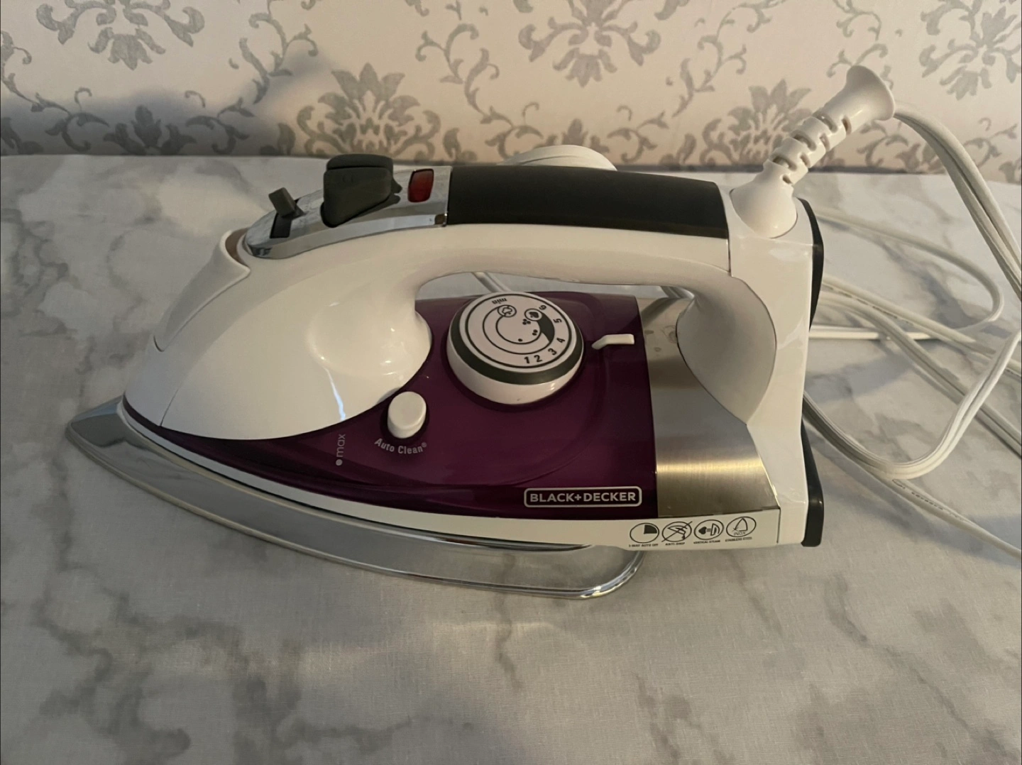I'm selling a Black+Decker iron with an iron board. It's in great shape, only used once, and ready to help you tackle your ironing pile. It has an auto-clean function and multiple settings to care for your fabrics