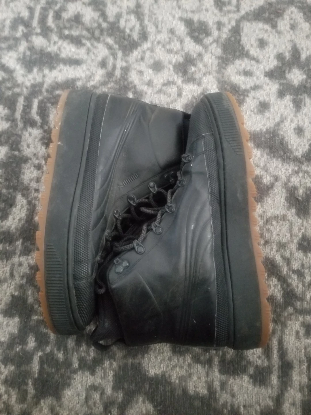 Mens Puma Black Hightop Winter Platform boots with a brown sole. They're lace-up style. The material appears to be leather and textile. These boots are great for casual wear. Completely Brand New Never Worn Just Looking to Sell Especially with the Current Winter Season! π₯π Just Asking $80 Really Good Price!