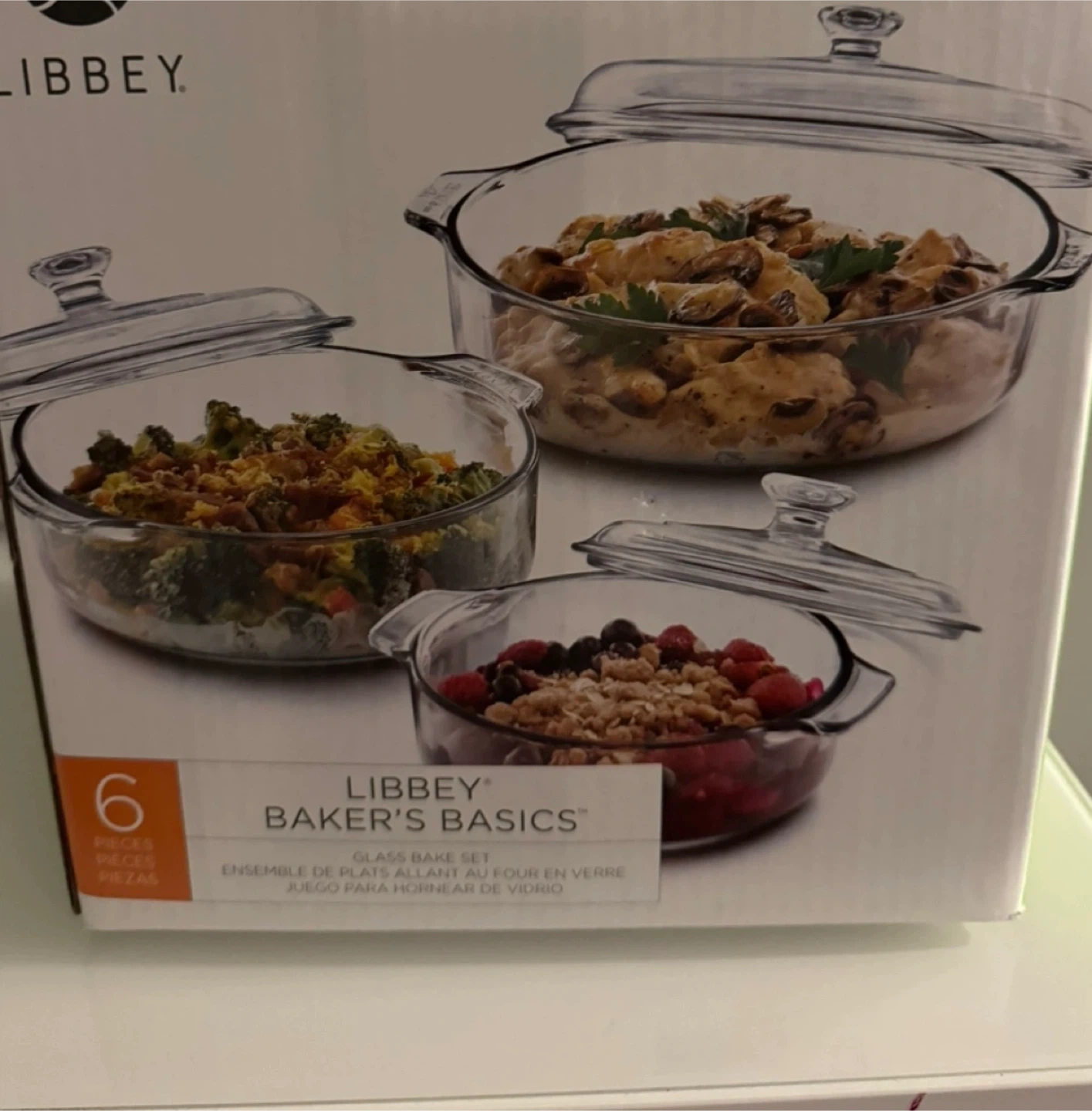 This is a 6-piece glass bake set from Libbey's Baker's Basics line. It's made of durable glass for all your baking needs. Includes multiple sizes for various recipes!