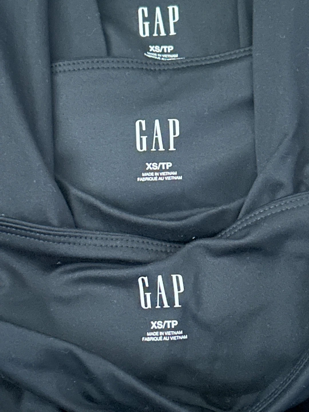 pairs of black GAP leggings. XS/TP size. Made in Vietnam. Great for everyday wear or workouts!