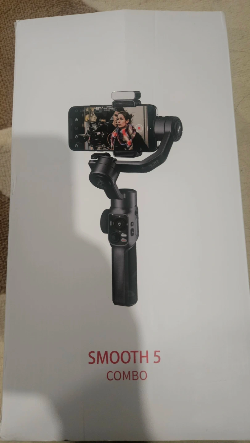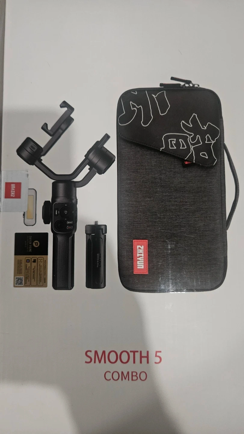 This is a Zhiyun Smooth 5 Combo gimbal. It's designed for smartphone videography. Includes original box and carrying case.