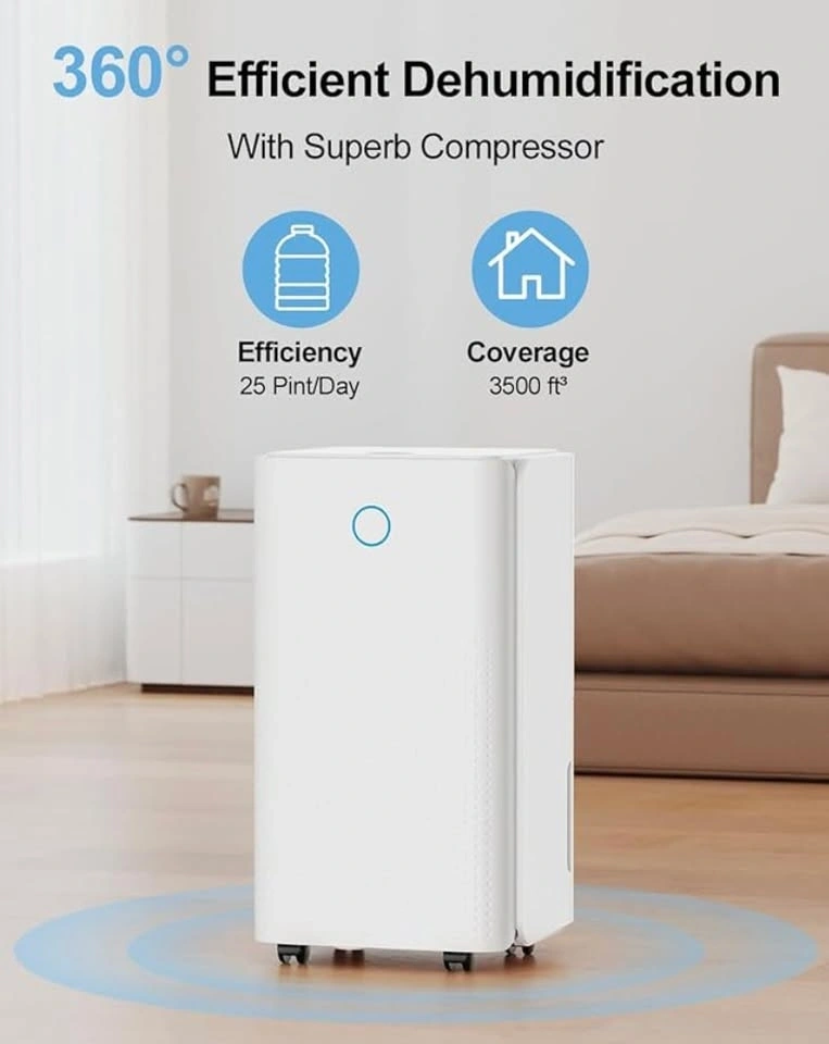 Capacity: Removes up to 25 pints of moisture per day
