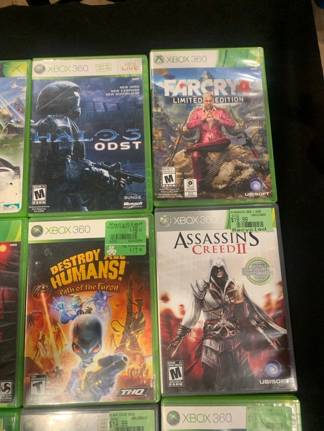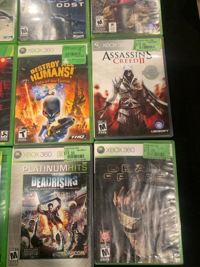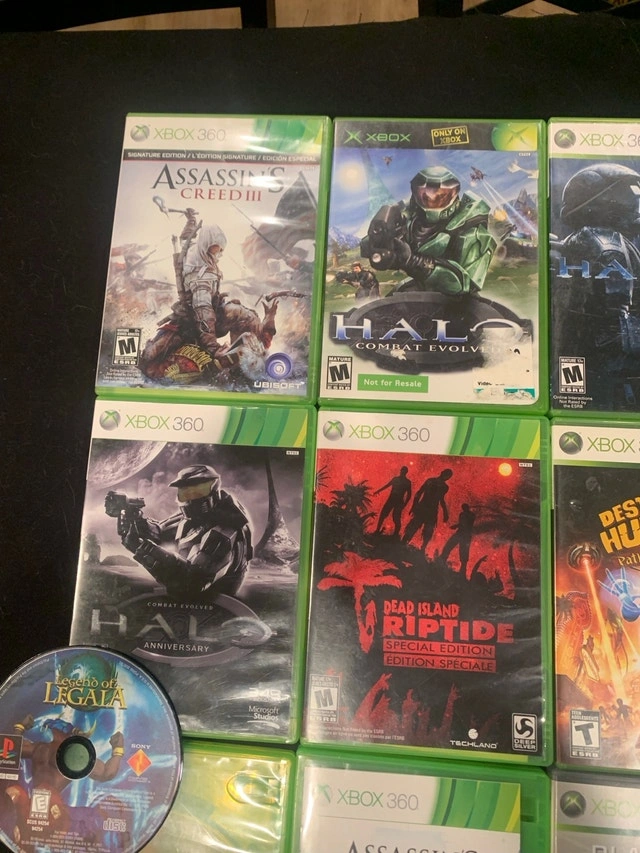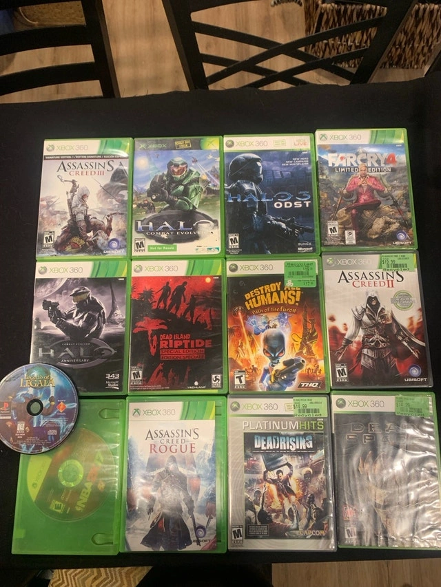 Dive into a treasure trove of gaming nostalgia with this collection of Xbox 360 and PlayStation 2 games! This lot includes titles like Assassin's Creed, Halo, Dead Island Riptide, Destroy All Humans!, Dead Rising, and more, offering a variety of genres and adventures. Please note these are used games, so expect some wear, but all are tested and ready for your gaming pleasure.