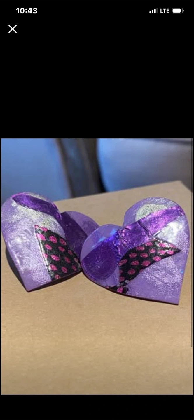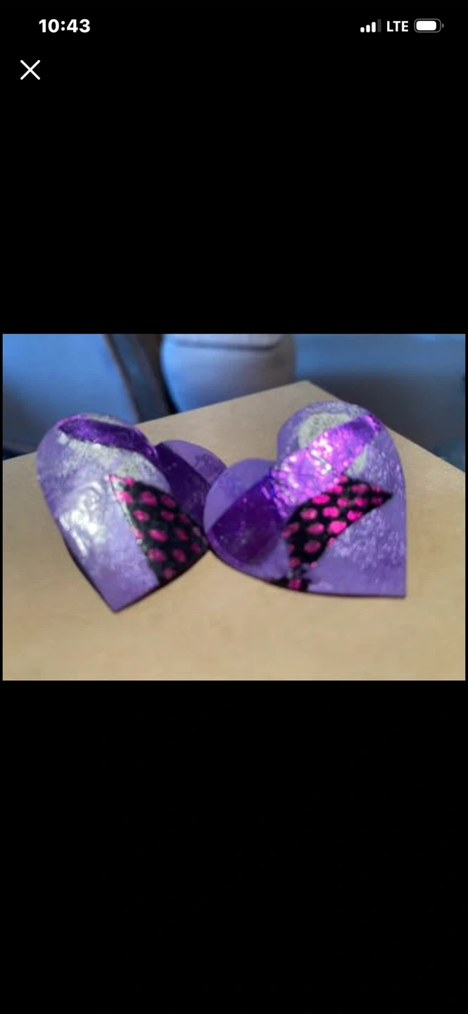 💜Unique & Fabulous Hand-Made by Montreal Designer Exotic Purple Heart Lightweight Earrings with Fun decorations & glitter with a patterned accent. 💜These will add a touch of airy romance ! 💜