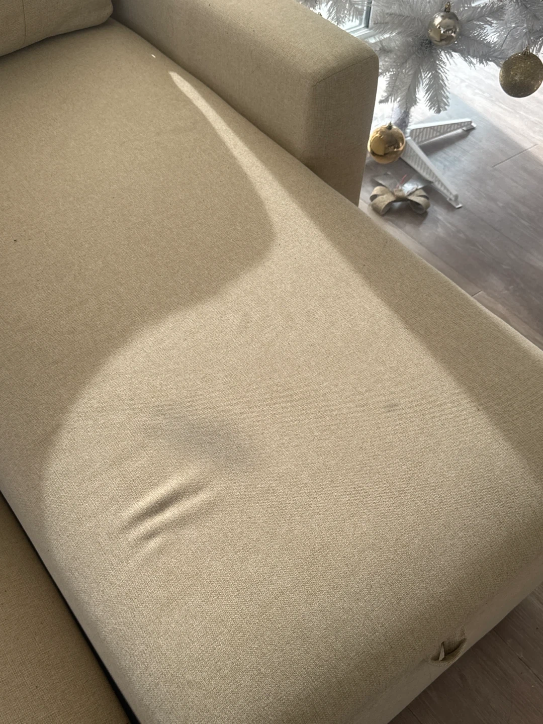 Just a little spot as shown in picture. But nothing a good cleaner can fix.