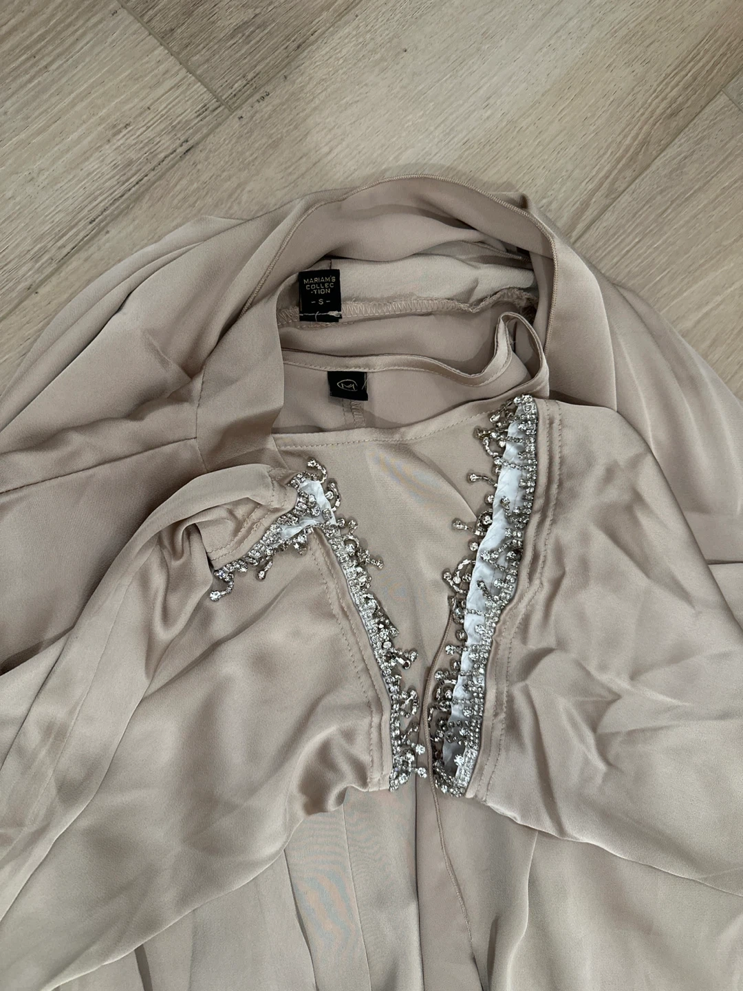 3-pcs Mariam’s Collection Beige Beaded Abaya
