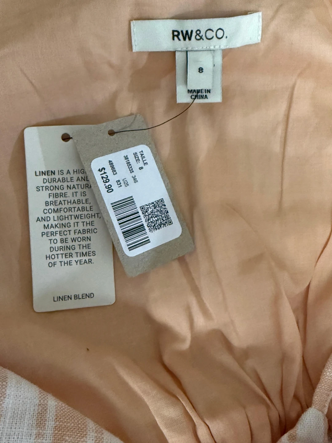 Brand new, never worn RW&CO dress in a beautiful peach/cream stripe. Lightweight linen blend, perfect for spring & summer.