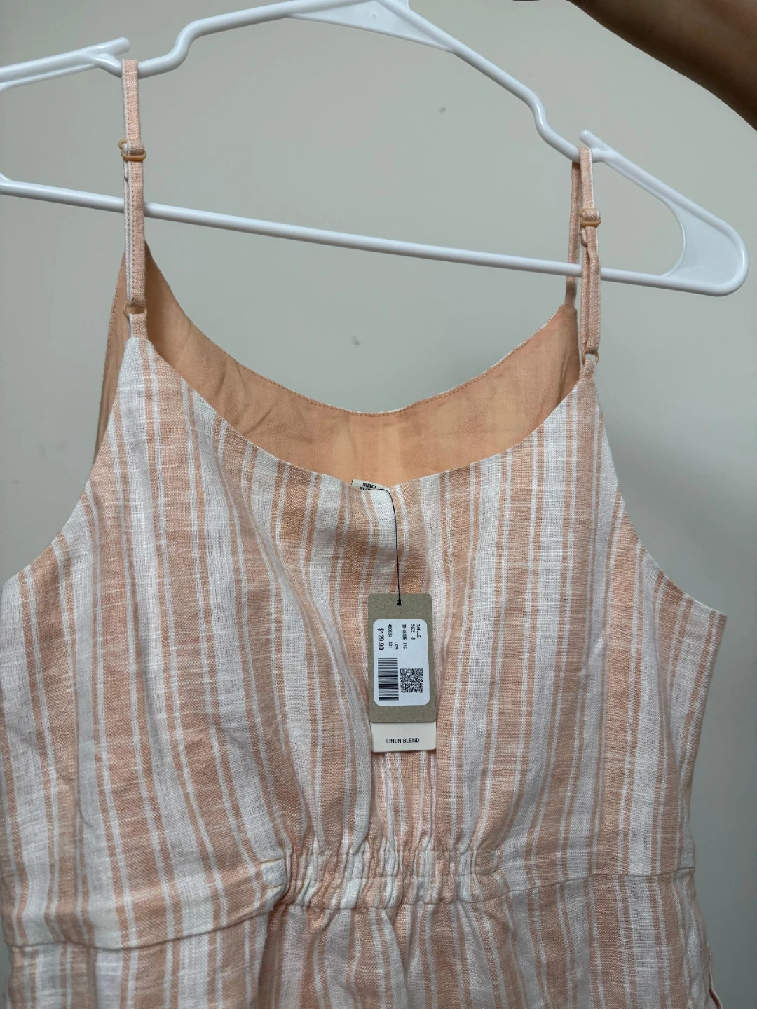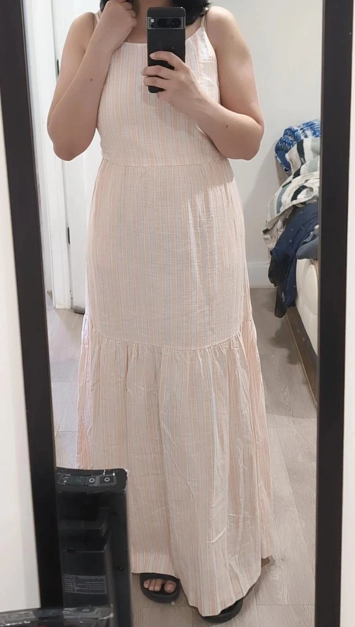 Brand new, never worn RW&CO dress in a beautiful peach/cream stripe. Lightweight linen blend, perfect for spring & summer.