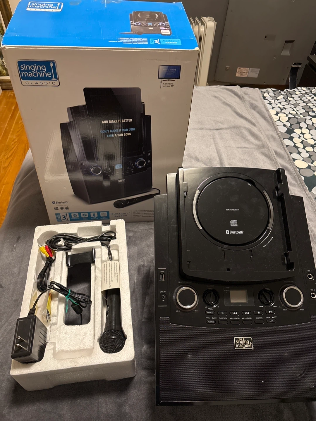 Get ready for some fun with this Singing Machine iSM990BT Classic karaoke player! It's Bluetooth enabled and plays CD+Gs. Includes a microphone and accessories. Connect it to your TV for the full karaoke experience!