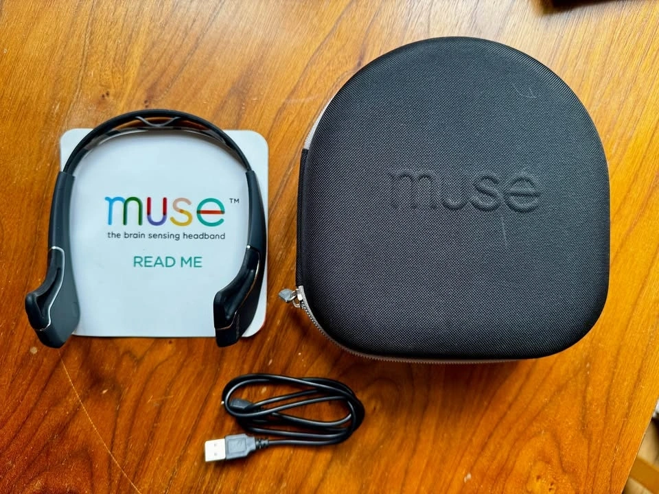 Excellent condition. Comes with meditation headband with sensors, travel case, charge cord, and setup guide. Ready to use. Works in tandem with the free MUSE app and provides statistical neurofeedback on your relaxation and meditation. Shows you ways to improve focus and self-awareness through relaxing meditation. This is a popular and effective device. Located near Danforth & Greenwood.