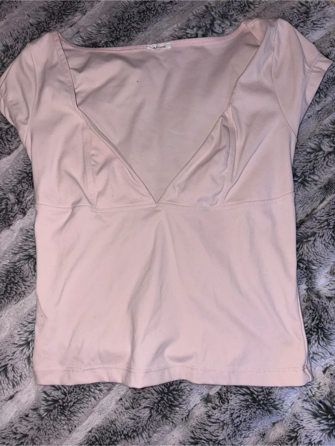 A soft pink cropped top from Garage. It's made of a stretchy material and has short sleeves. This top would be great for casual wear in warmer weather!