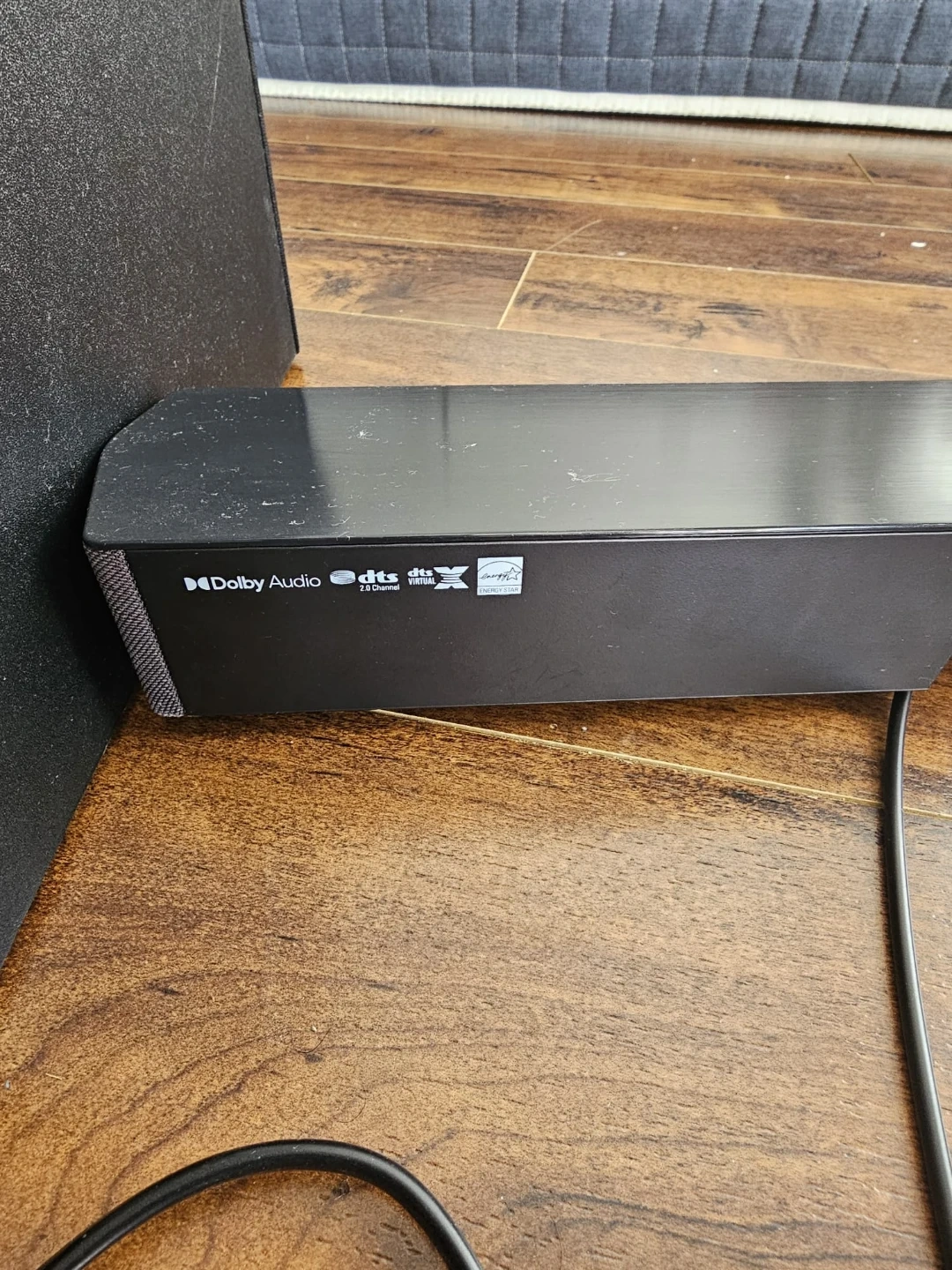 Samsung HW-C450 2.1 channel sound bar with a wireless subwoofer. Made in Vietnam. Manufactured August 2023. Power source is AC 110-120V, 50/60Hz, 25W.