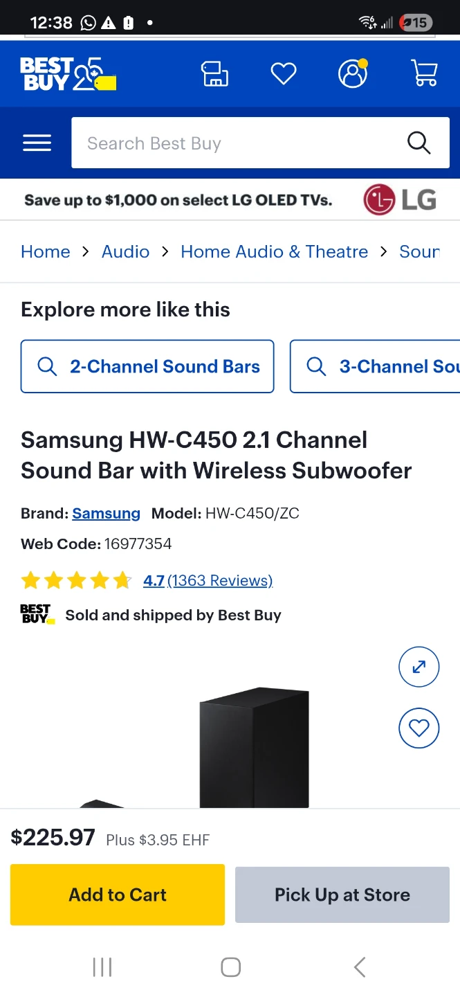 Samsung HW-C450 2.1 Channel Sound Bar with Wireless Subwoofer