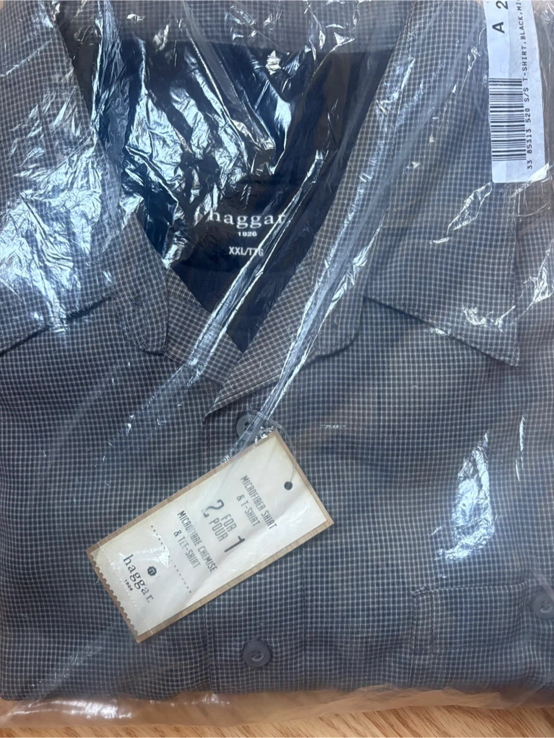 I'm selling a brand new Haggar microfiber shirt and t-shirt combo, size XXL. It's still in the original packaging!