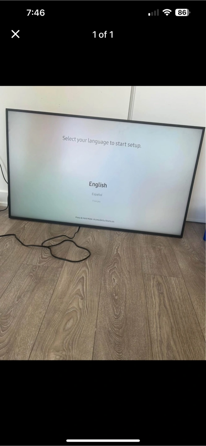 Selling a Samsung TV in great condition! NOT A SMART TV - The screen displays the initial setup screen where you can select your language. It also has accessibility shortcuts. Perfect for streaming your favorite shows and movies!!