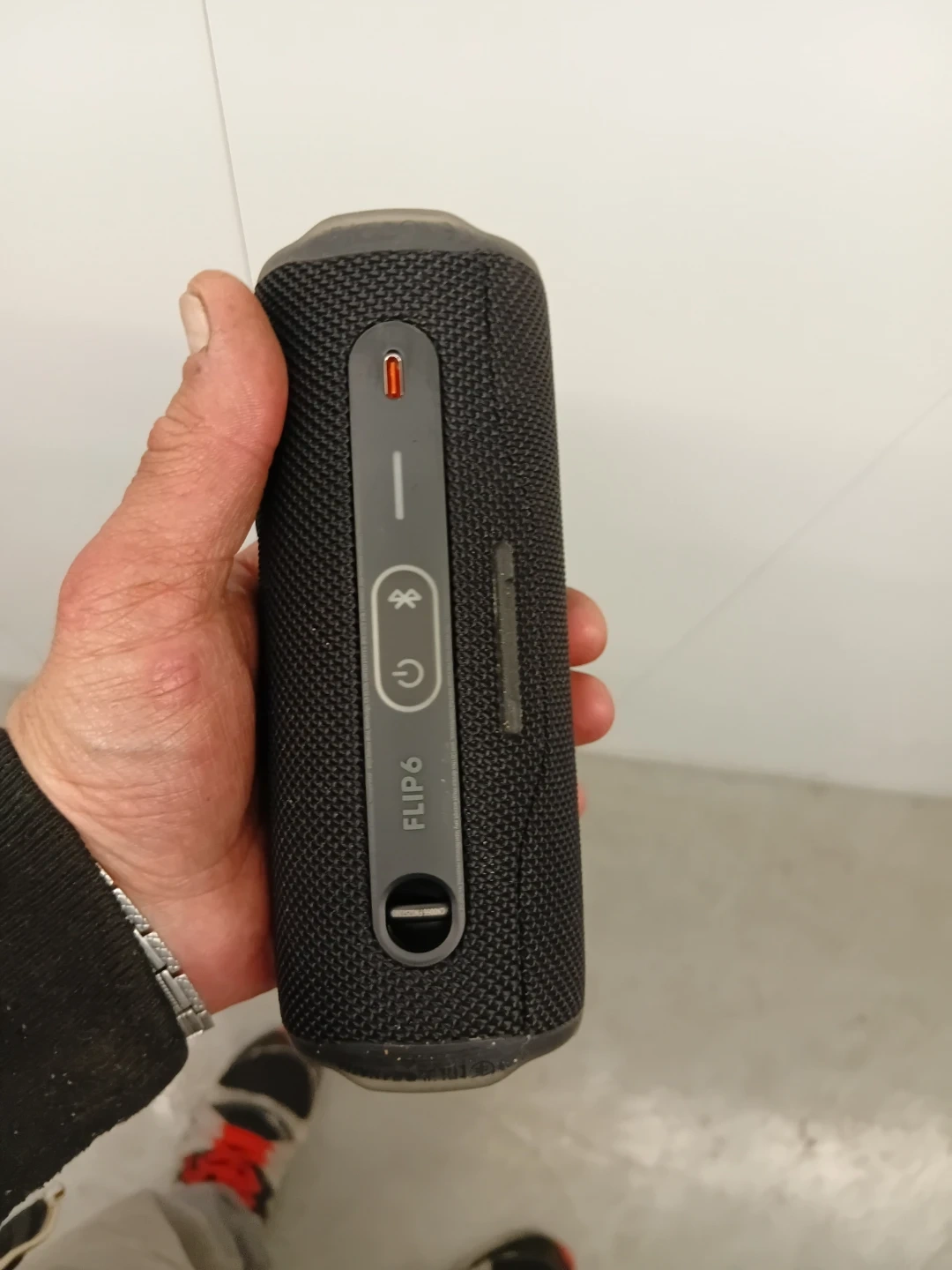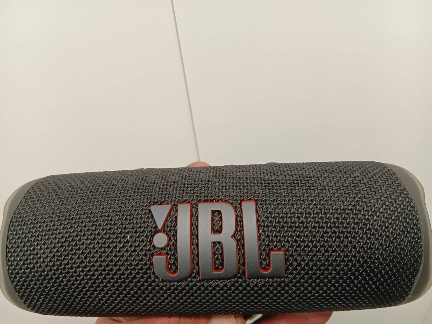 This is a black JBL Flip 6 portable Bluetooth speaker. It's water and dustproof for outdoor use. This speaker is great for parties and outdoor adventures!