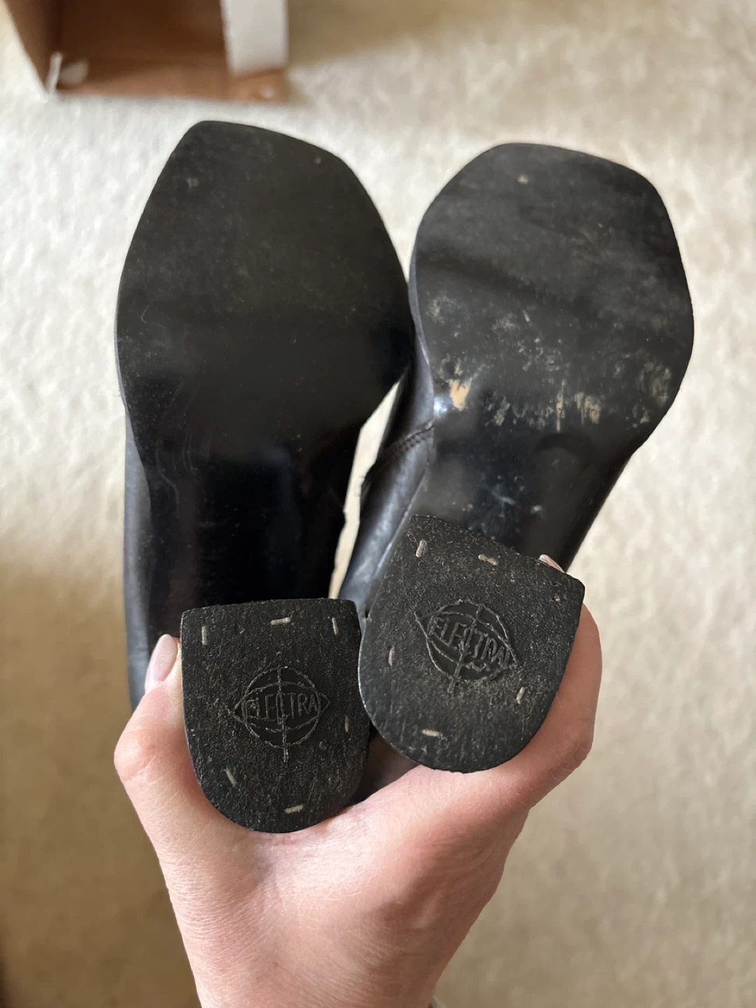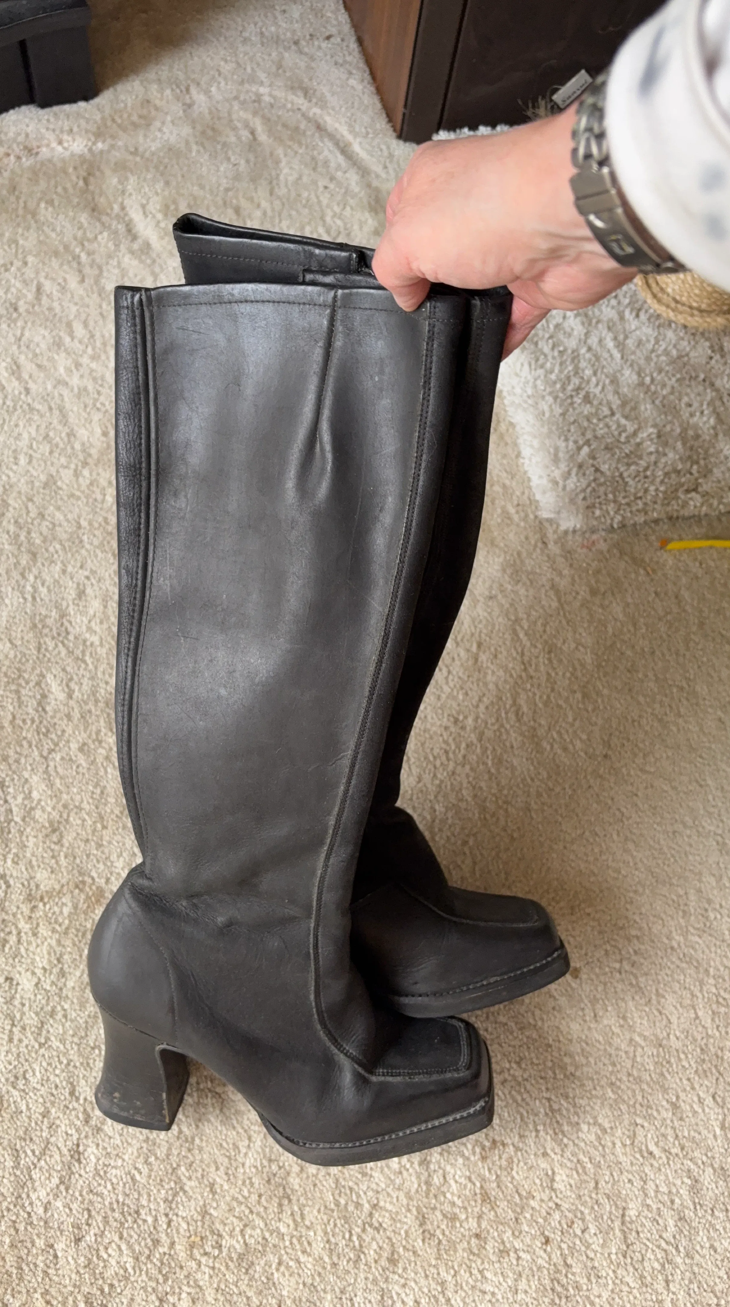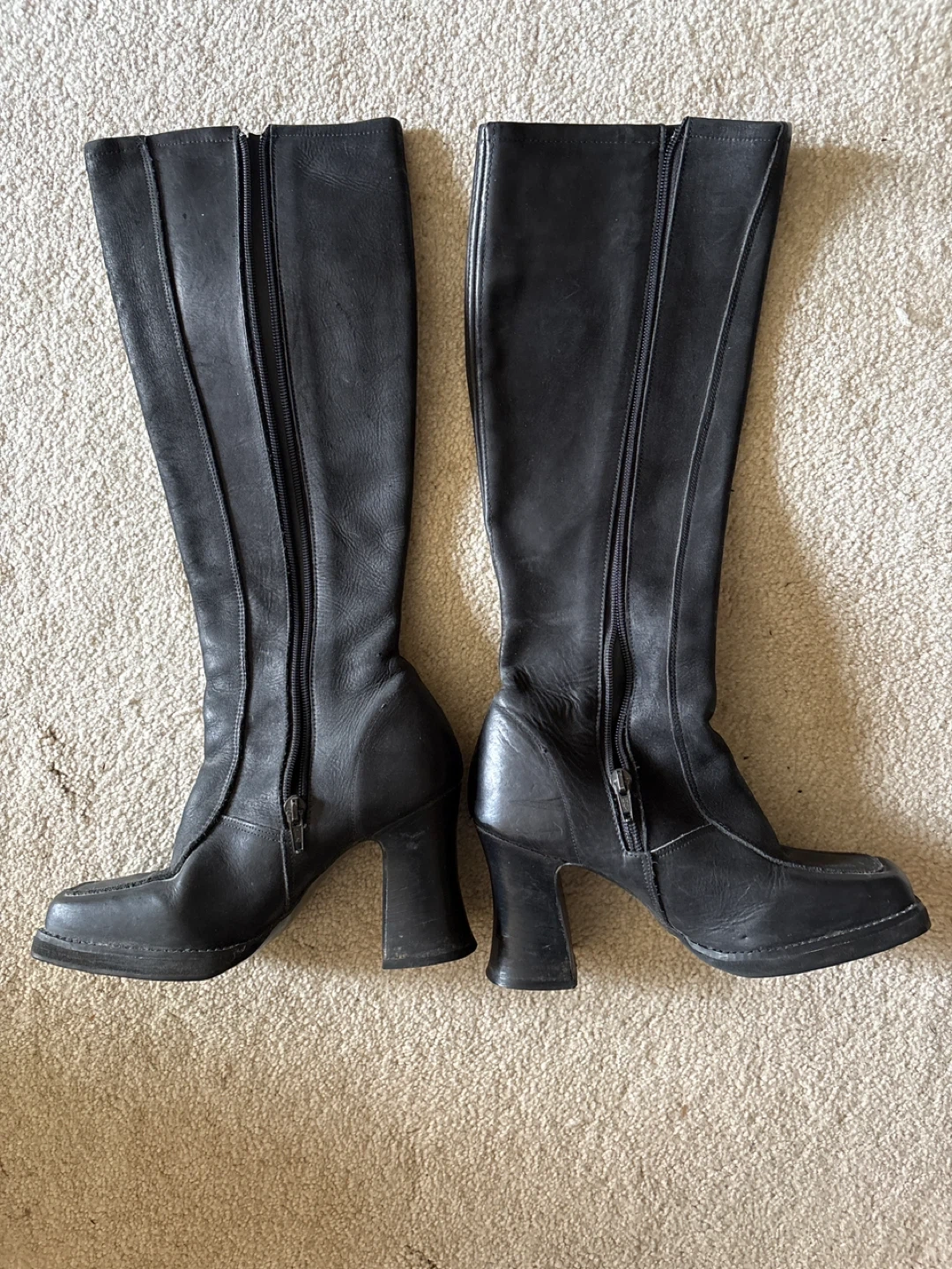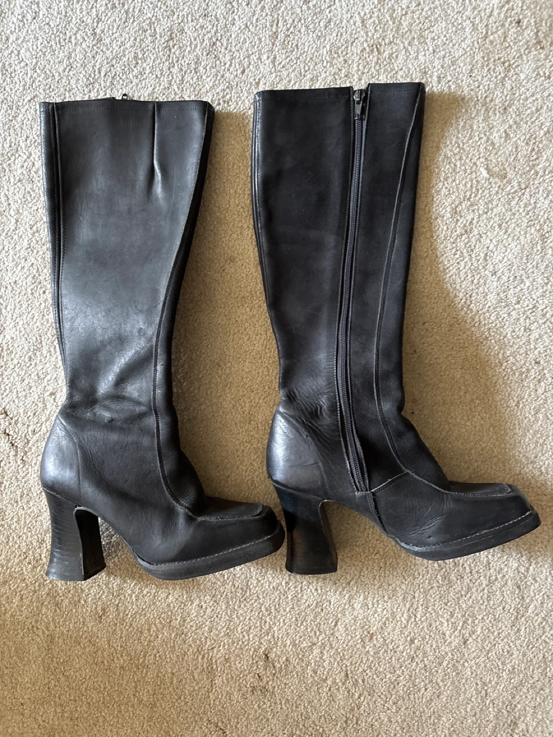 Buy & SellBlack Leather Square Toe Knee-High BootsBlack Leather Square Toe Knee-High Boots$40These are black leather knee-high boots with a square toe. They feature a side zipper and a block heel. The calf is a narrow fit.ConditionGoodSize7BrandMaybe John FluevogWHERE TO MEETWesburn Community CentreView MapSELLERverifiedAnyaGarden Village700 reviews0 chats·0 favorites·11 viewsSEND CHAT TO SELLERHi Anya! I’m interested in your listing.Hi Anya! I’m interested in your listing.Get the Karrot app to chatSign In to chat