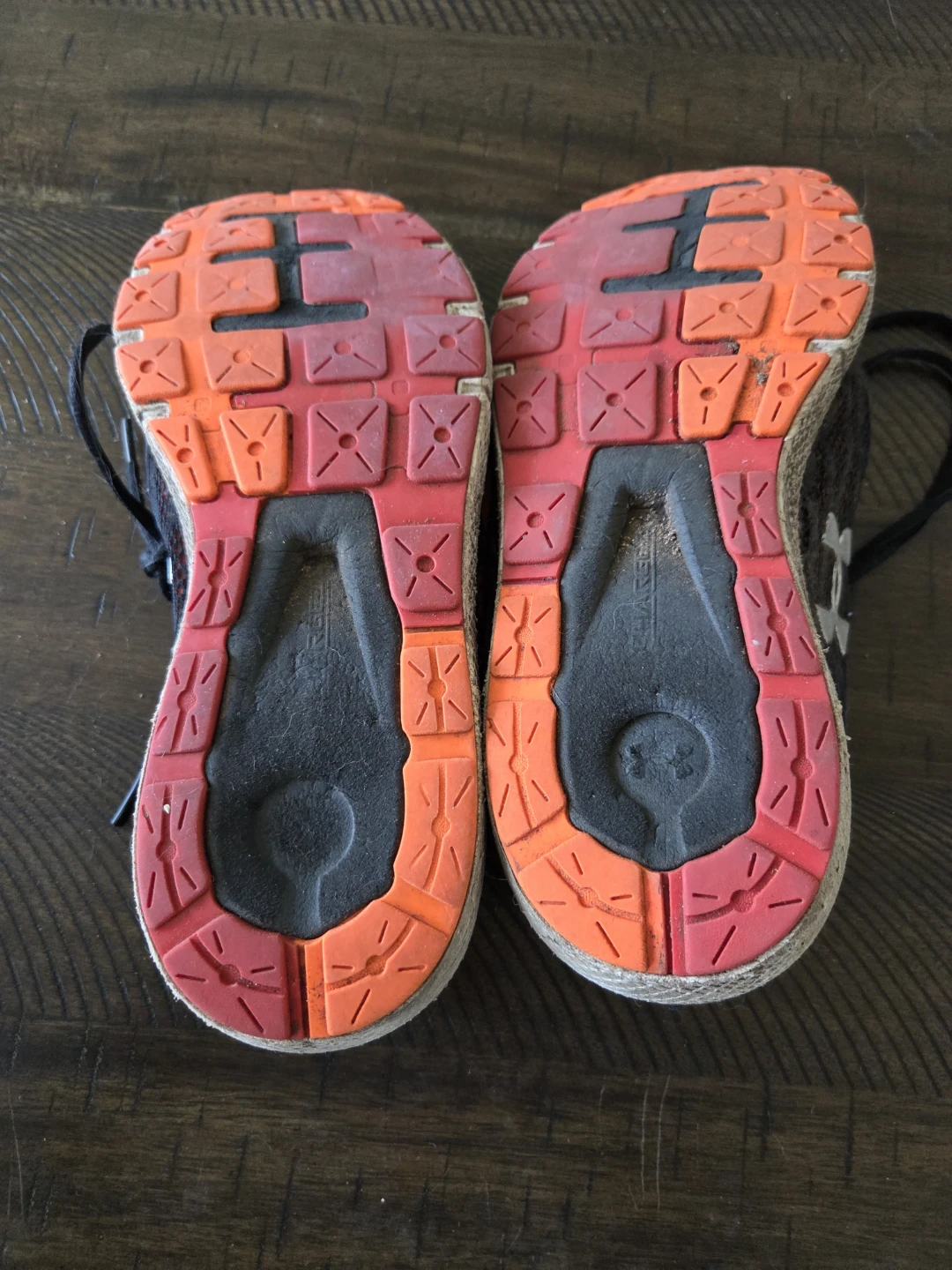 These are Under Armour Charged running shoes. They're a men's size 10. They have a breathable mesh upper and a durable rubber outsole. Well worn and a little dirty which is why they are being given away for free.