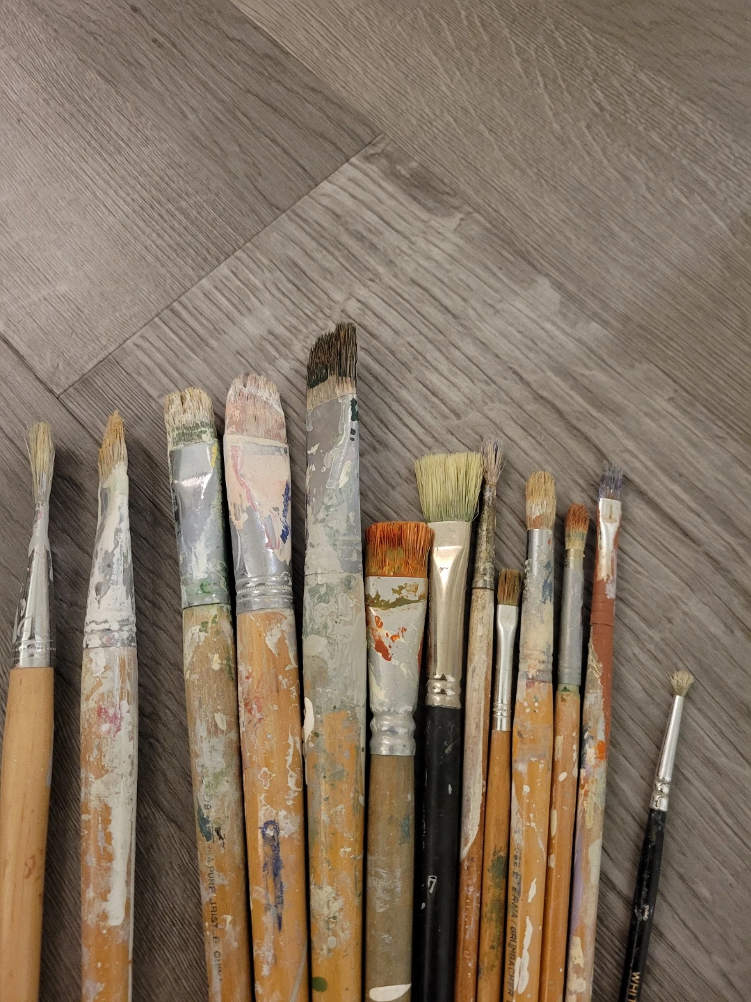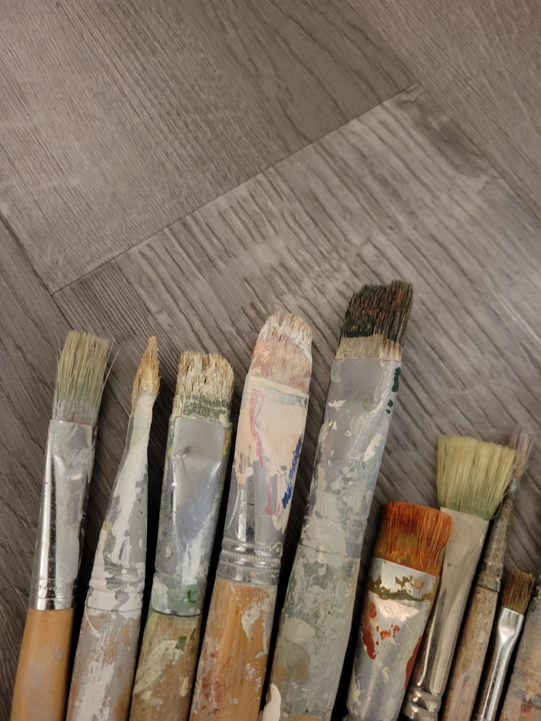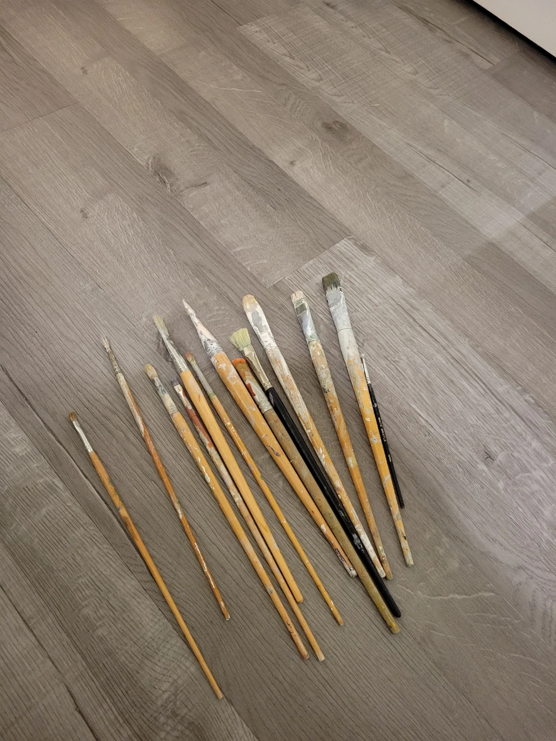 A collection of used paintbrushes, perfect for art projects or crafts! They show signs of use, but still have plenty of life left in them. Great for various painting techniques