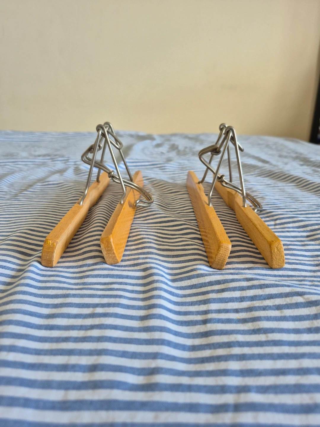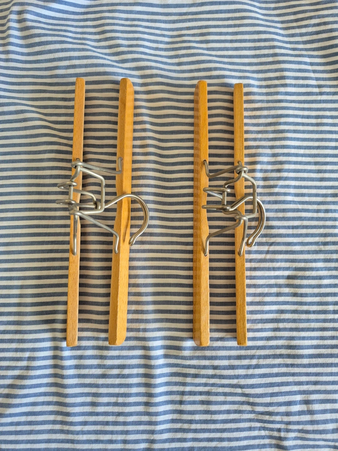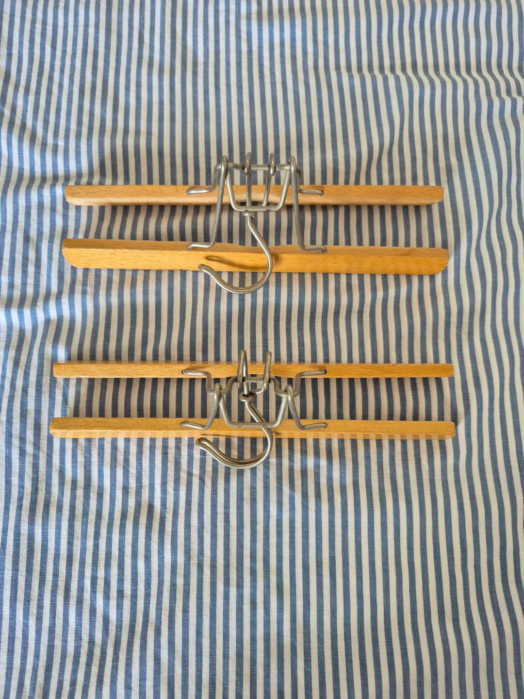 Vintage solid wood clamp hangers for pants and skirts.