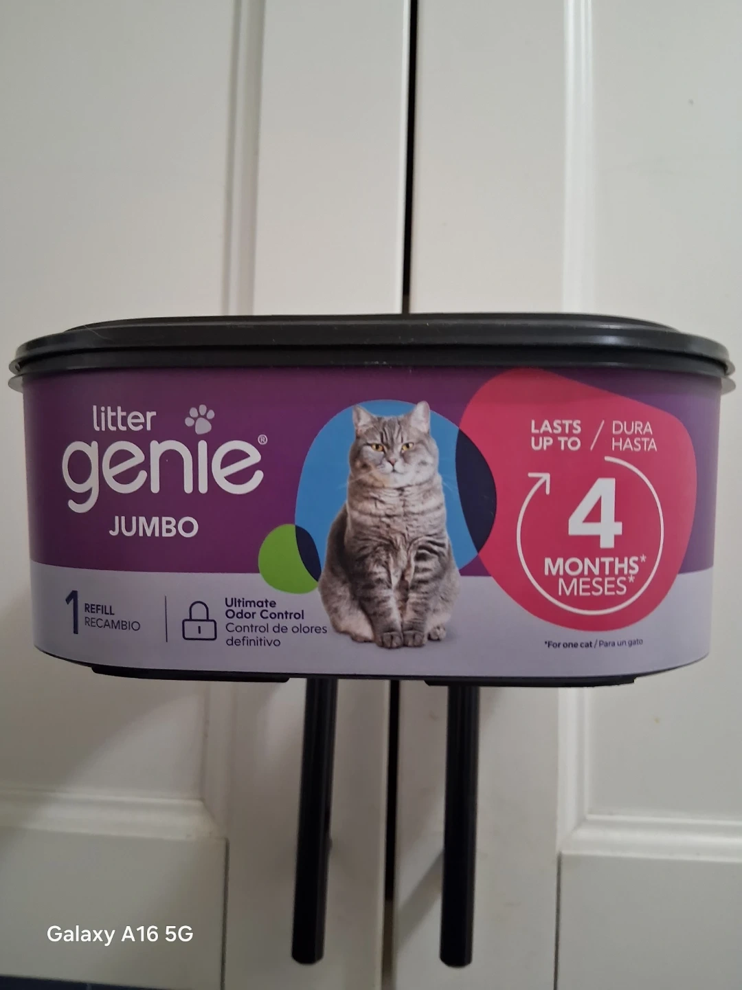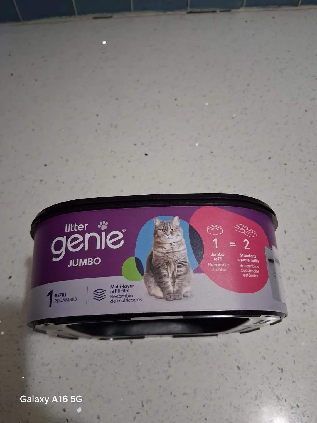 Jumbo refill for Litter Genie. Contains one multi-layer refill film, equivalent to two standard square refills. Made in Canada.