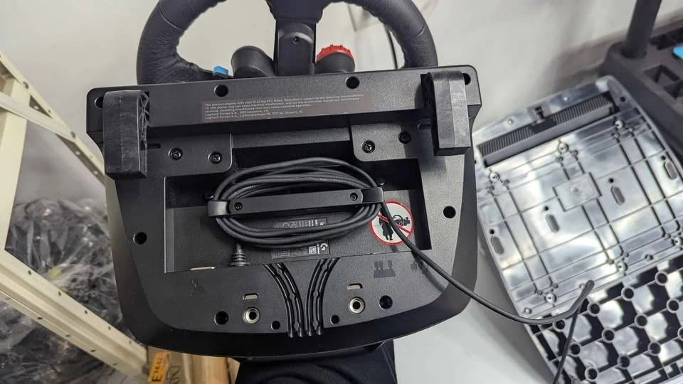 Steering wheel and pedals. Tested on PC and working perfectly. Product says compatible with PlayStation, PC and Xbox. See last photos for two small slices in the steering wheel, which do not affect use. I want you to see the damage before pickup.
