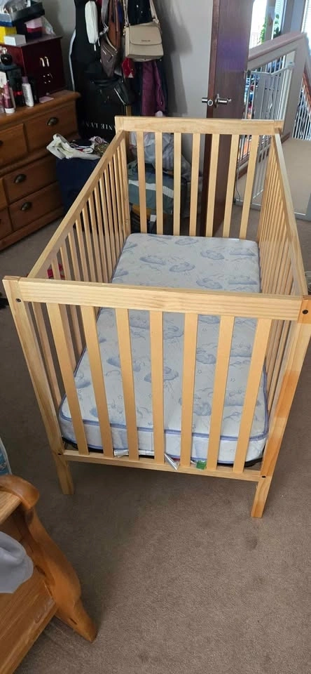 Selling our full size crib with mattress. Crib is basically in brand new condition. Was only used when my babies were visiting grandma. Clean and in great condition. Asking $100 OBO. Pick up near U of M.