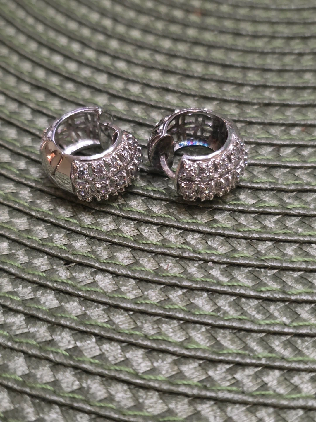Sparkly Silver Hoop Earrings with Rhinestones Stamped 925