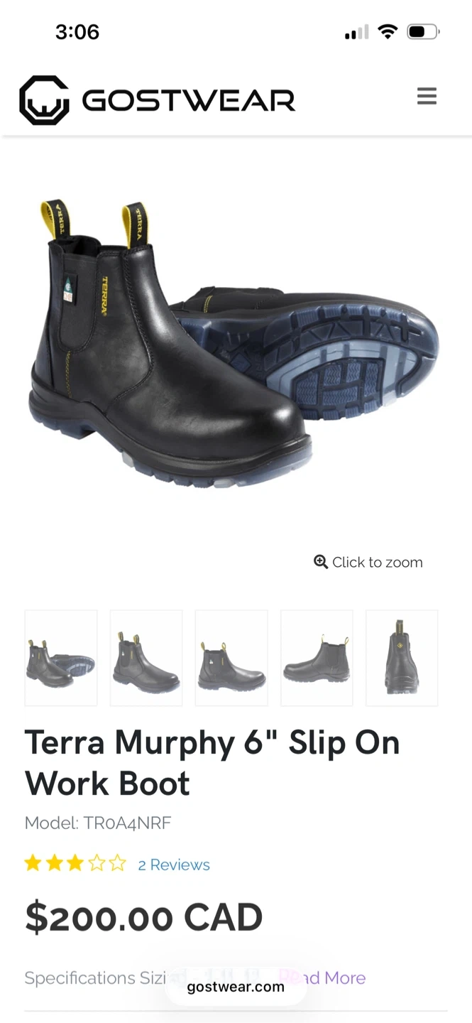 Terra Murphy 6" slip-on work boots in black. Leather uppers with elastic side panels for easy on/off. Durable rubber sole.