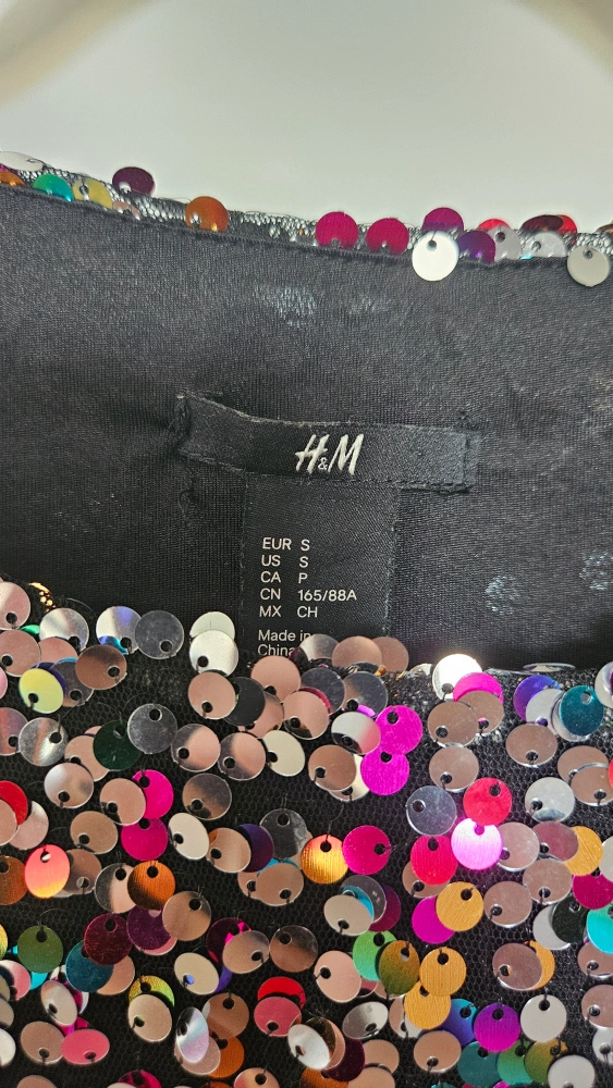 Sparkle and shine with this fun H&M sequin top! It's a size small and features a colourful array of sequins. Perfect for adding a bit of pizzazz to any outfit, holiday or Christmas party, or an evening out.