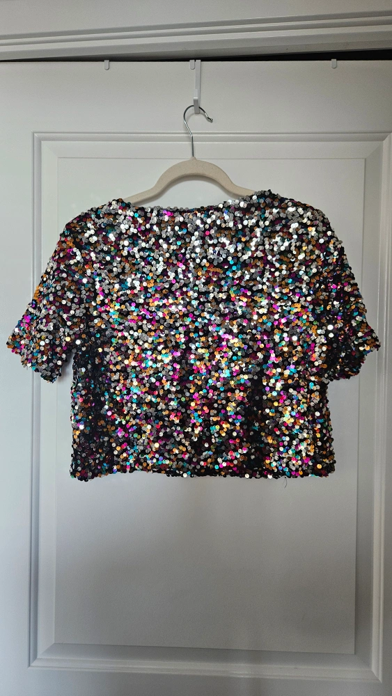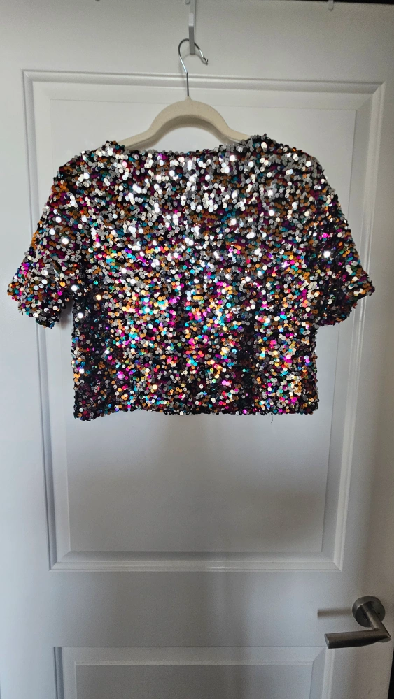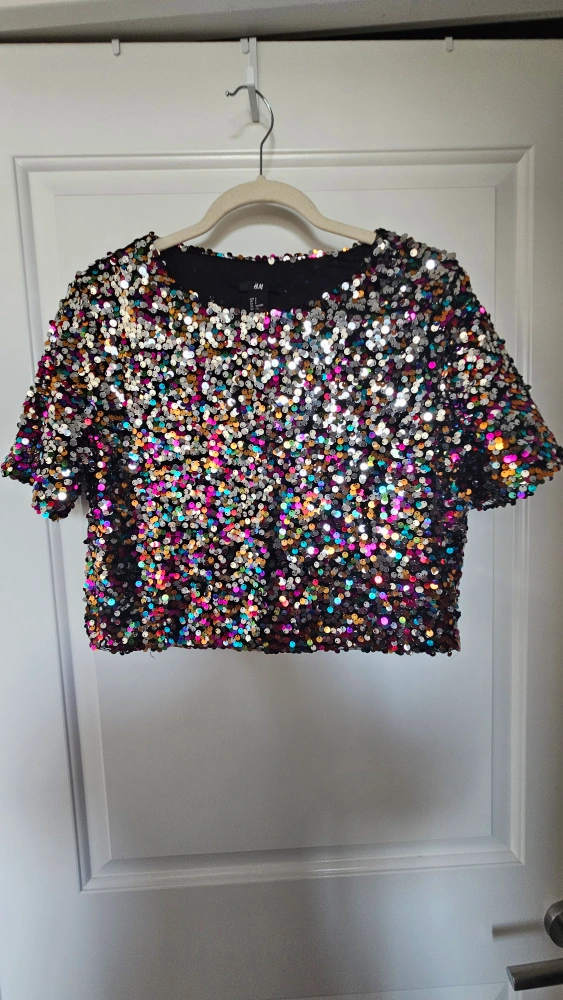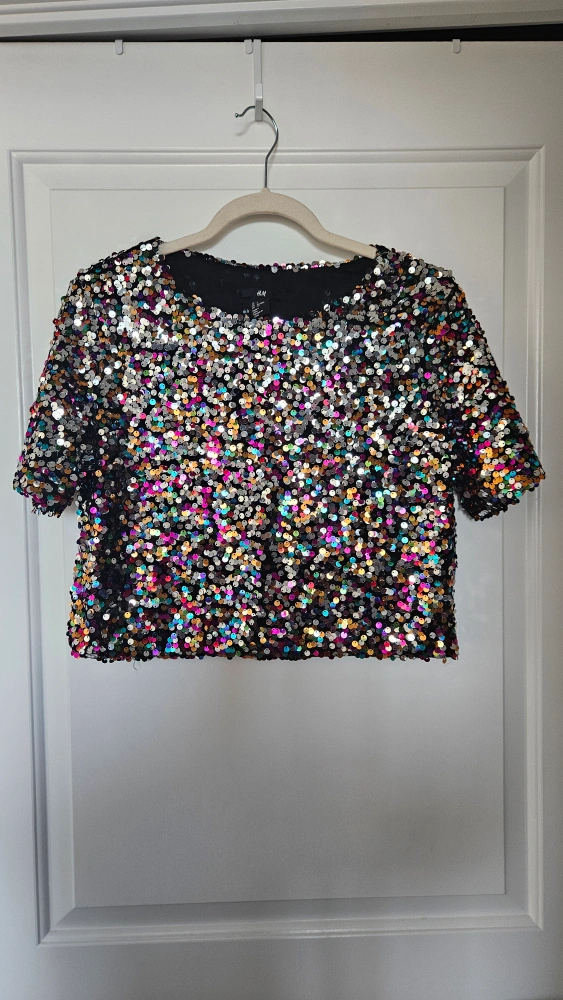 Sparkle and shine with this fun H&M sequin top! It's a size small and features a colourful array of sequins. Perfect for adding a bit of pizzazz to any outfit, holiday or Christmas party, or an evening out.