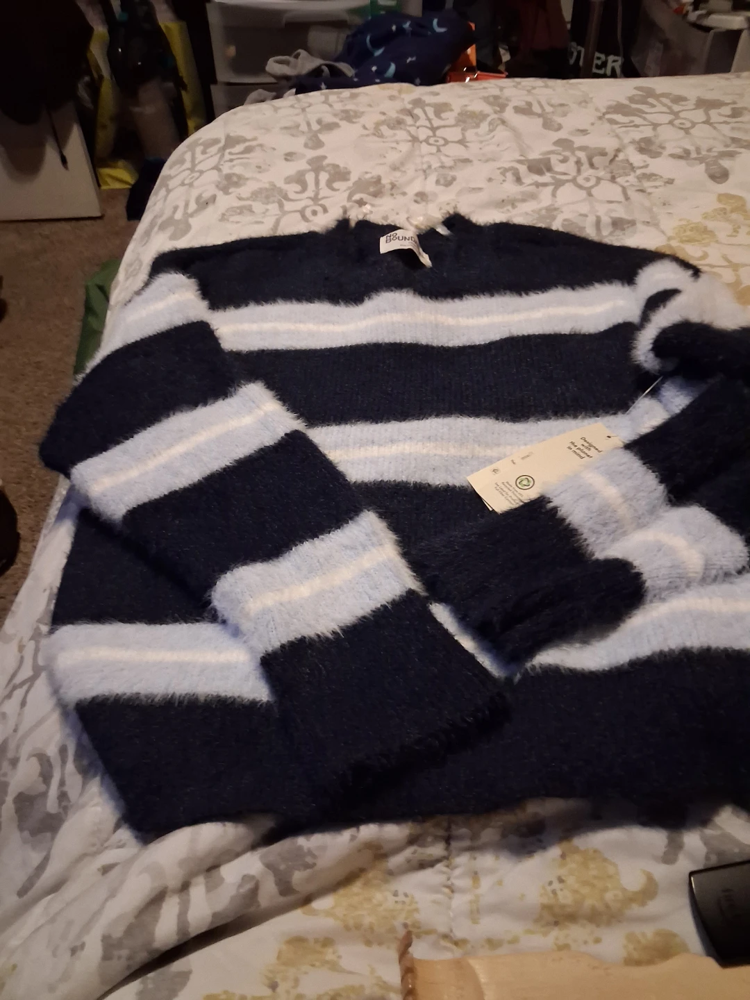 Navy and Blue Striped Fuzzy Sweater