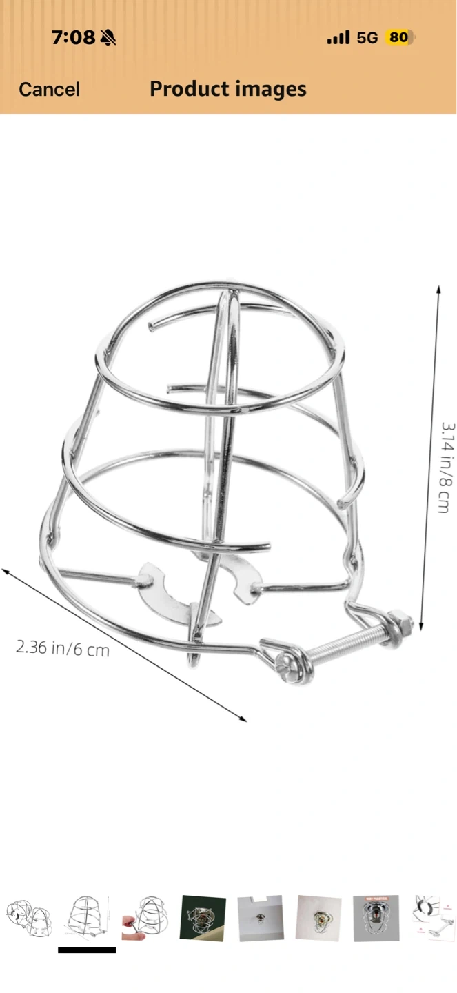 Chrome metal bulb cage designed to protect light bulbs. It has a diameter of 2.36 inches (6 cm) and a height of 3.14 inches (8 cm). This guard is suitable for various industrial or vintage light fixtures.