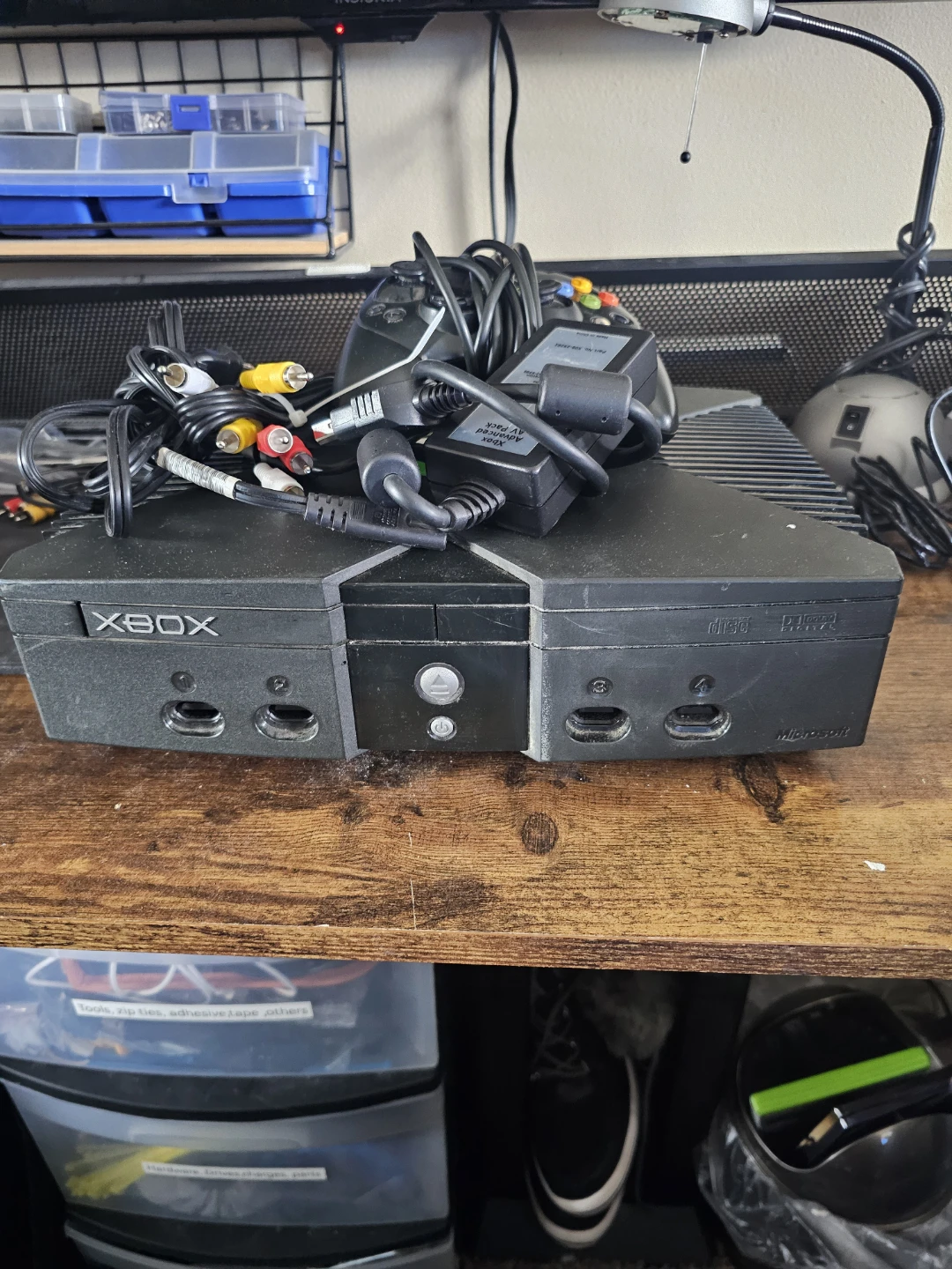 Really good condition xbox original console, has been reset and cleaned, its also modded where you can download any game you want or watch movies or do simulations