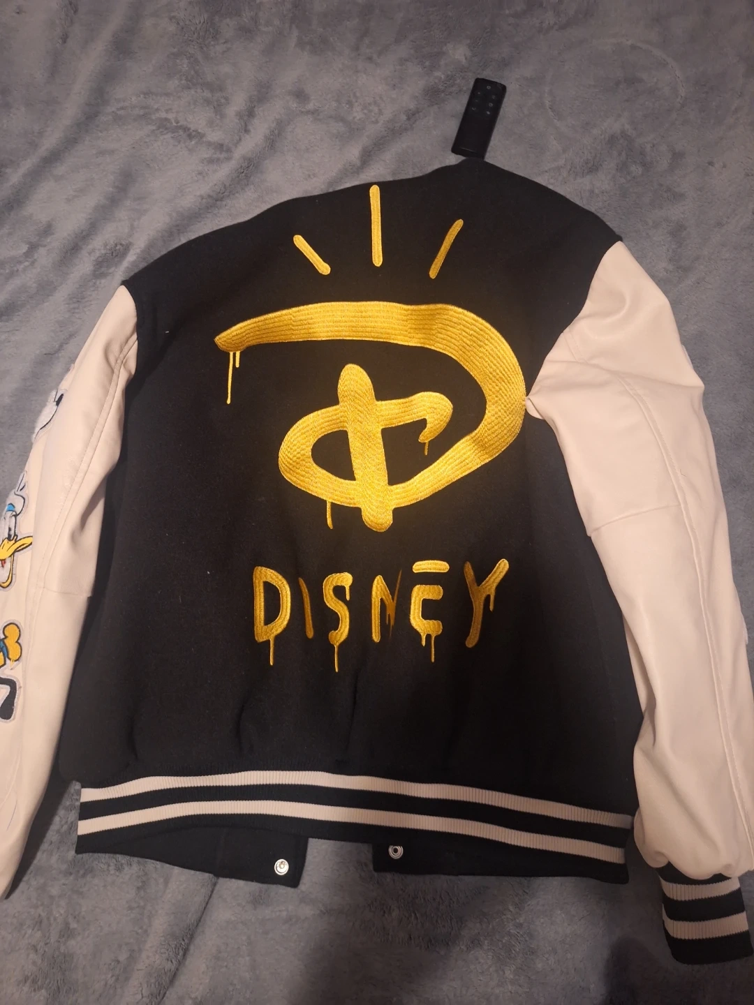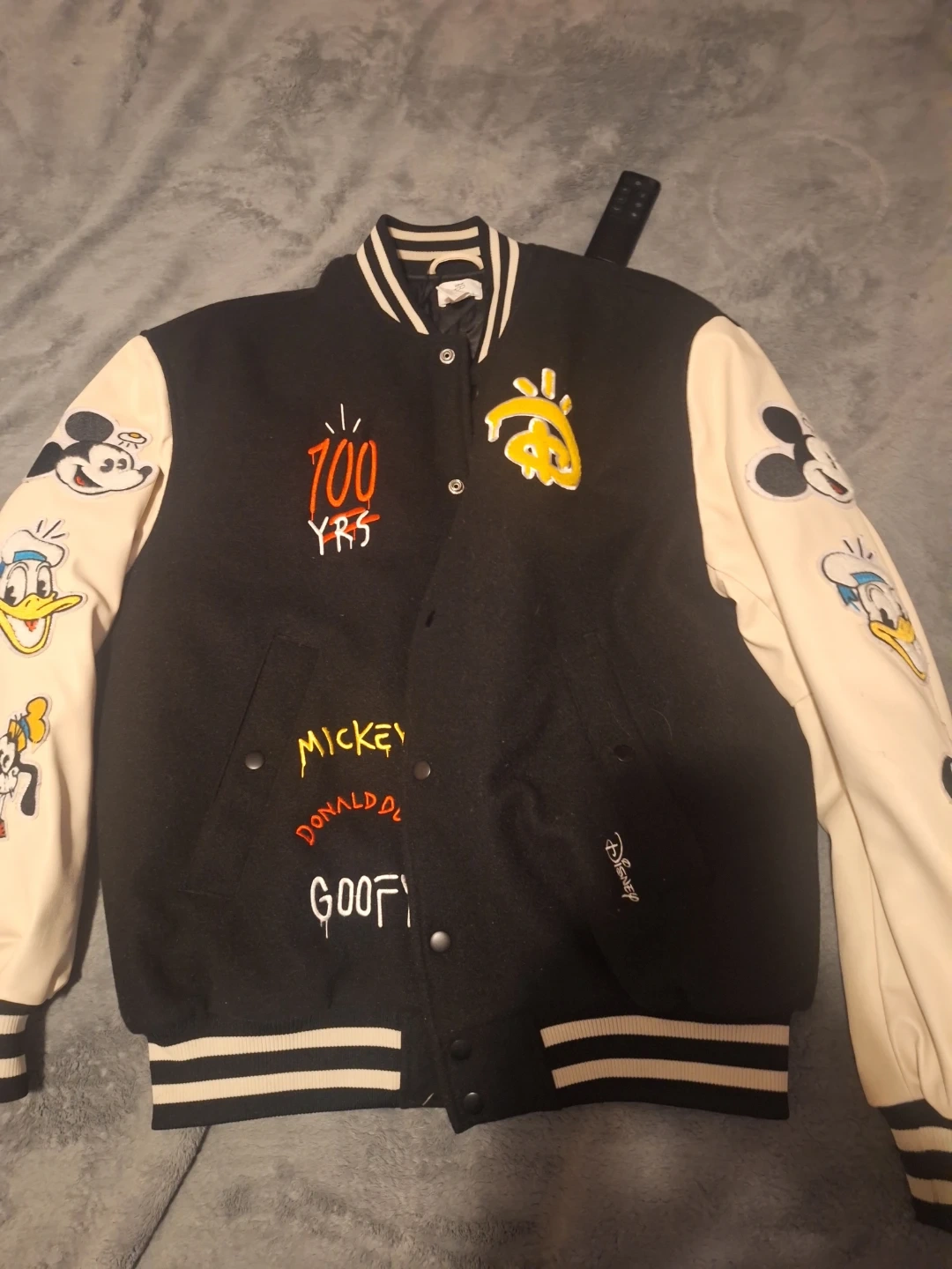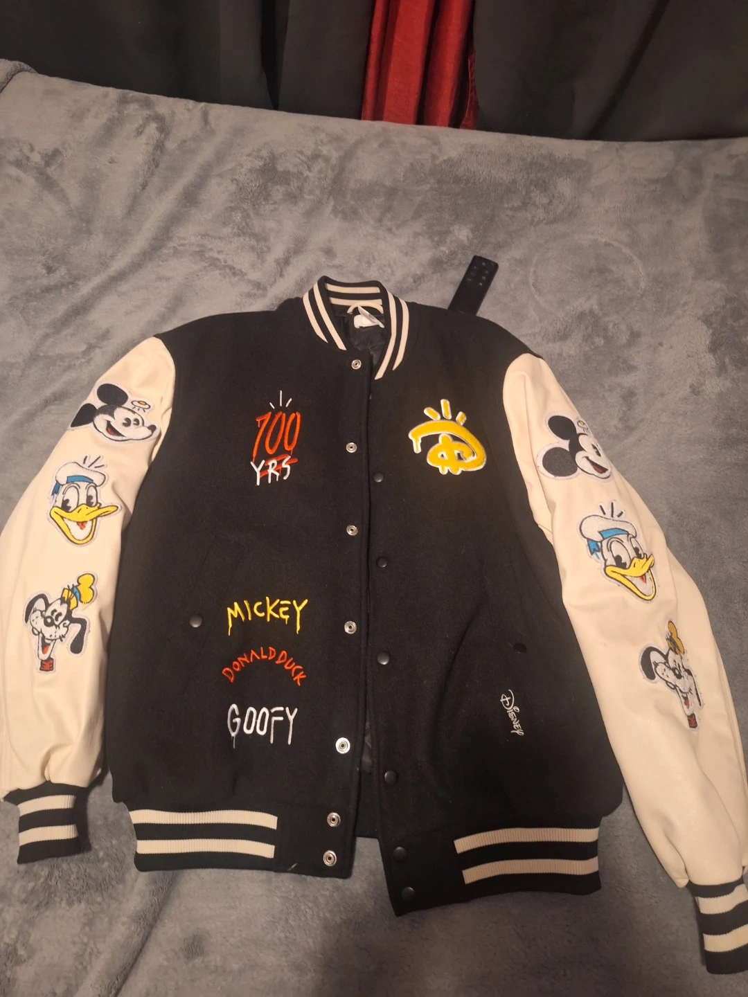 H&M Disney 100th anniversary X guccighost varsity jacket, moms friend gave me it as a gift a year nd a half ago and I never really wore it, the only thing that isn't on it is the tag and the ghost sticker because I took both off when I got it